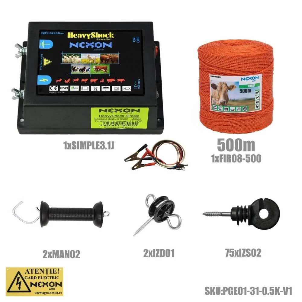 Pachet gard electric Simple 3.1 J 12 V, Hobby, 500 m, 3 lite, 90 kg, NEXON