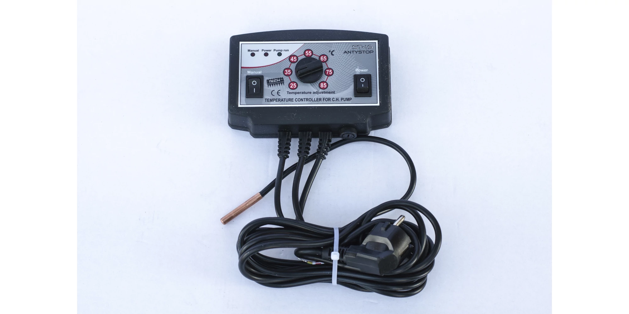 Controlerul TECH EU-19 pornește sau oprește pompa în funcție de temperatura apei din instalație. Așa economisești până la 60% din energia consumată de pompă și prelungești durata ei de viață.