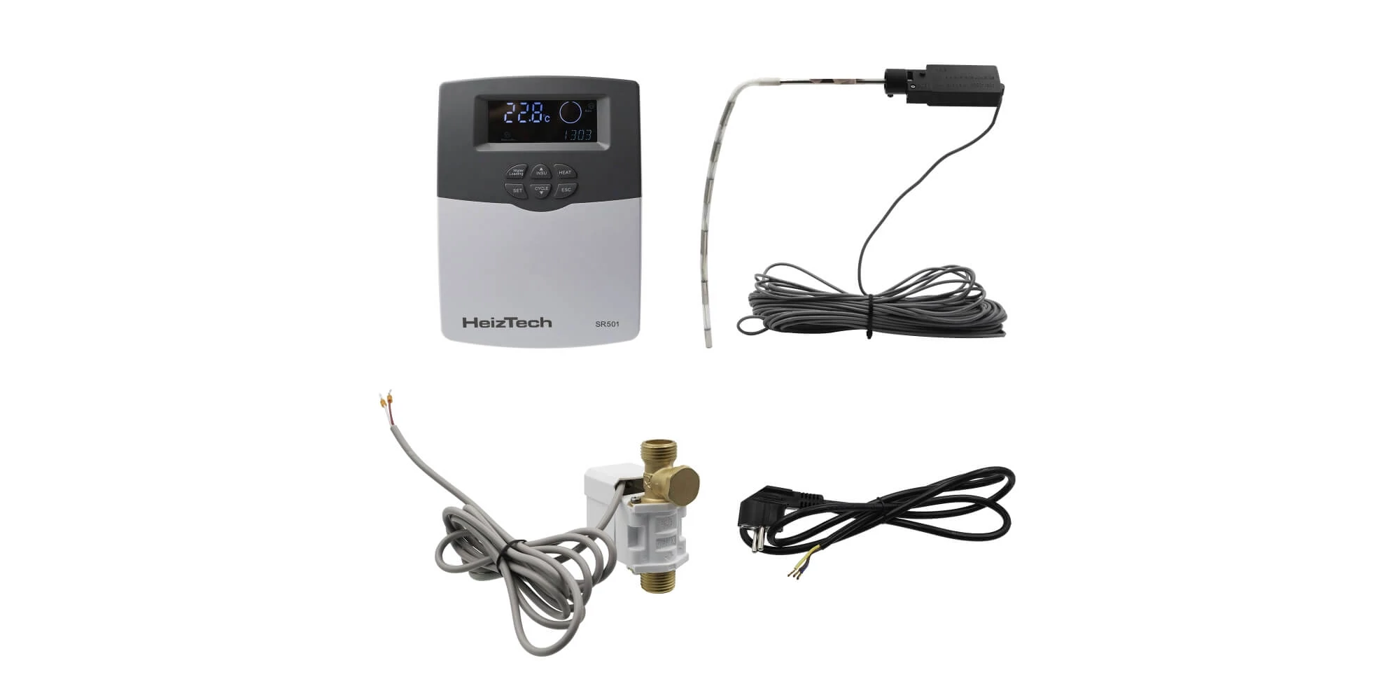 Controlerul SR501 HeizTech trimite un semnal către electrovana automată care deschide și închide conducta de apă rece, care pe baza datelor procesate, umple rezervorul de apă fără presiune până la nivelul prestabilit.
