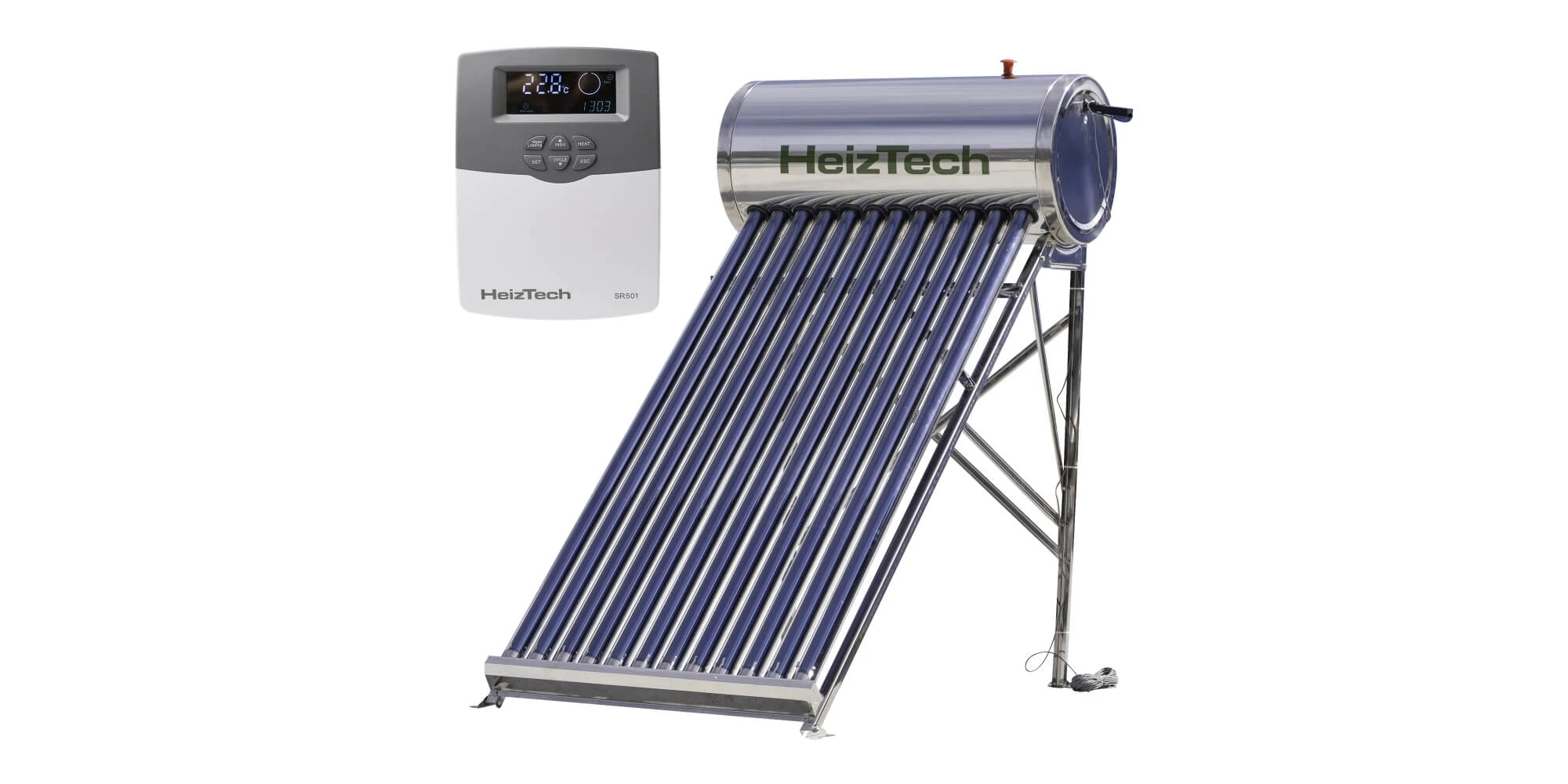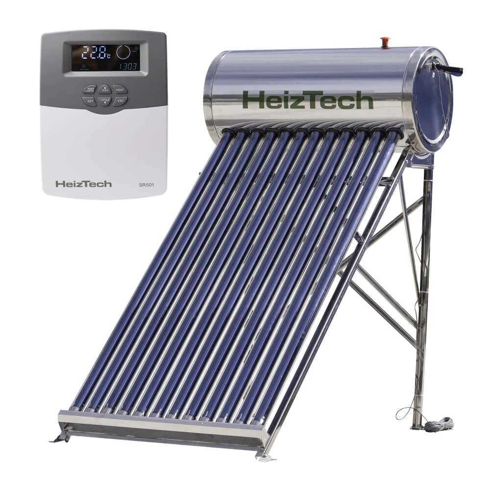 Panou solar 120 litri automatizat nepresurizat cu 12 tuburi vidate, rezervor si suport otel inoxidabil, pentru preparare apa calda menajera, controler SR501, HeizTech | 10840344 | 1.349,00 Lei | Panouri solare cu rezervor nepresurizat | Confort prin instalații de calitate | Melinda InstalSpecificații tehnice