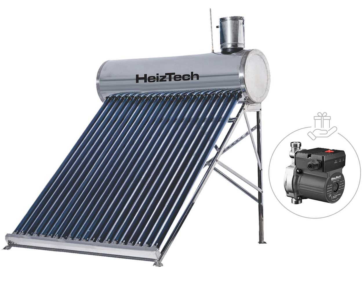 Panoul solar cu 20 tuburi vidate pentru preparare apă caldă menajeră cu rezervor oțel inoxidabil nepresurizat 200 litri HeizTech, este unul dintre cele mai bine vândute produse ale noastre. Cheia acestui succes nu este un secret. Ca și în cazul tuturor produselor noastre de marcă proprie, ne-am străduit și continuăm să ne străduim să oferim cea mai bună calitate posibilă la cel mai bun preț posibil. Având în vedere că aproape toate componentele sunt realizate din oțel inoxidabil, putem garanta durabilitatea produsului, care vine cu o garanție standard de 3 ani, spre deosebire de garanția tradițională de 2 ani.