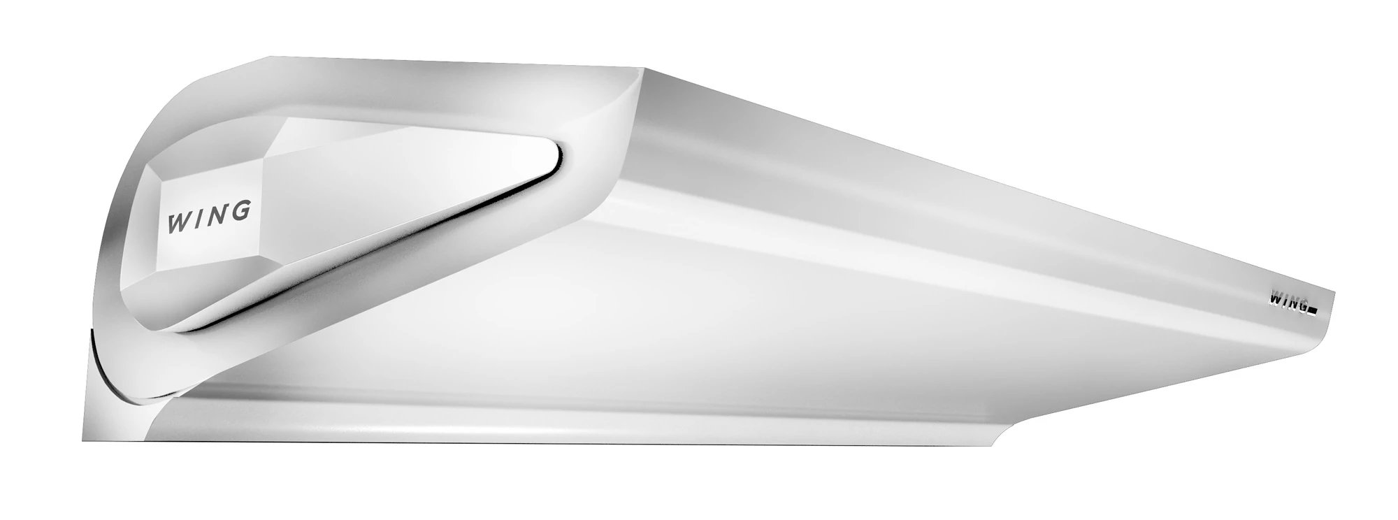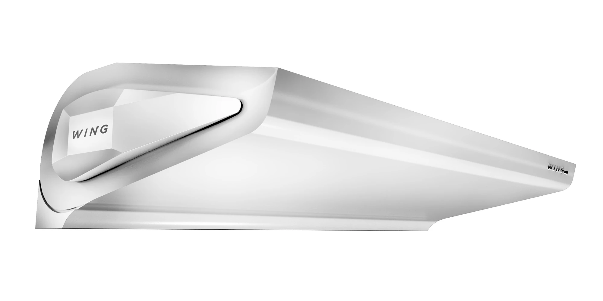 WING reprezintă o nouă generație de echipamente HVAC, evidențiind pasiunea pentru design-ul modern și formele simpliste inspirate din industria aeronautică. Carcasa minimalistă, cu forma unei aripi stilizate, conferă perdelei de aer impresia de planare în aer, iar finisajul cu un diamant ascunde componentele inovatoare, stabilind noi standarde în industrie.