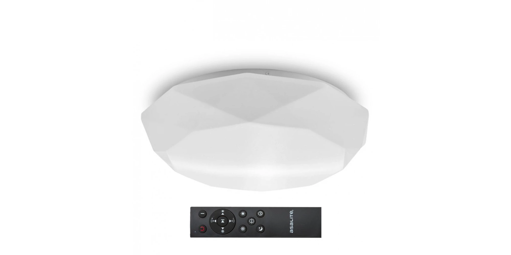 Plafoniera cu LED, diamant, 48 W, cu telecomandă, 3400 lm, ASAL0198, ASALITE cu surse de lumină LED reprezintă o soluție decorativă și de lungă durată pentru iluminarea uniformă, estetică și plăcută ochilor în casa dumneavoastră, datorită cipurilor și driverului LED de înaltă calitate și fiabil, precum și formei sale rotunde elegante și abajurului din opal.