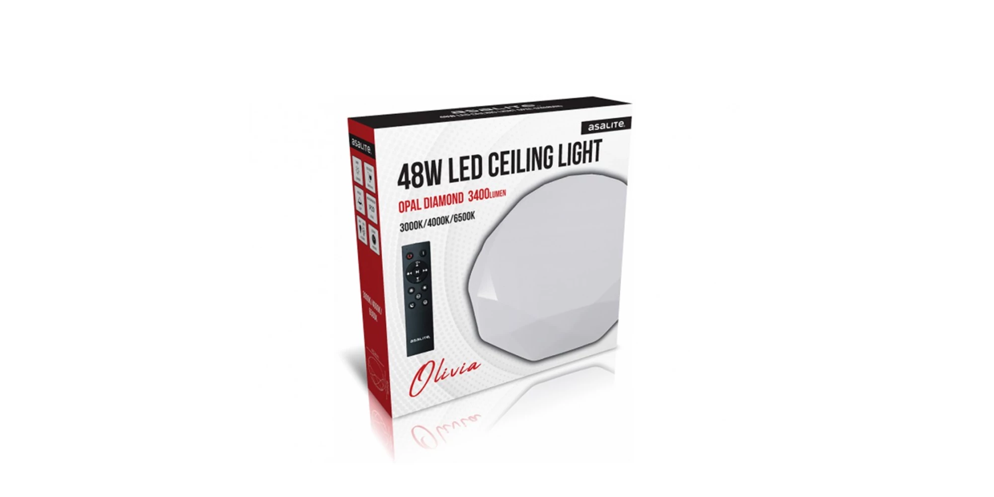 Plafoniera cu LED, diamant, 48 W, cu telecomandă, 3400 lm, ASAL0198, ASALITE asigură o luminozitate peste media pieței de 3400 Lumeni la un unghi de deviere de 120 de grade, echivalent cu o sursă de lumină convențională de 200 W.