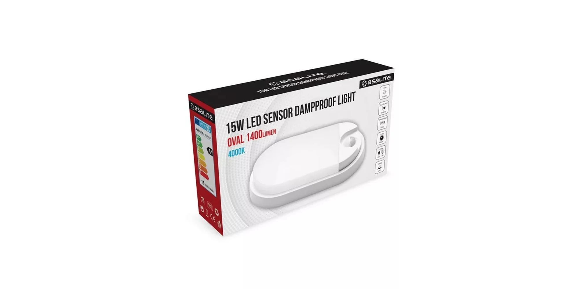 Plafonierele LED, ovala, cu senzor, 15 W, 4000K, IP54, 1400 lm, ASAL021 ASALITE este capabilă să atingă 1400 de lumeni la o putere de 15 W. Acesta poate ilumina un spațiu la 140 de grade, ceea ce îl face o alegere optimă pentru iluminarea zonelor exterioare ale casei dumneavoastră (curți, terase, garaje etc.).