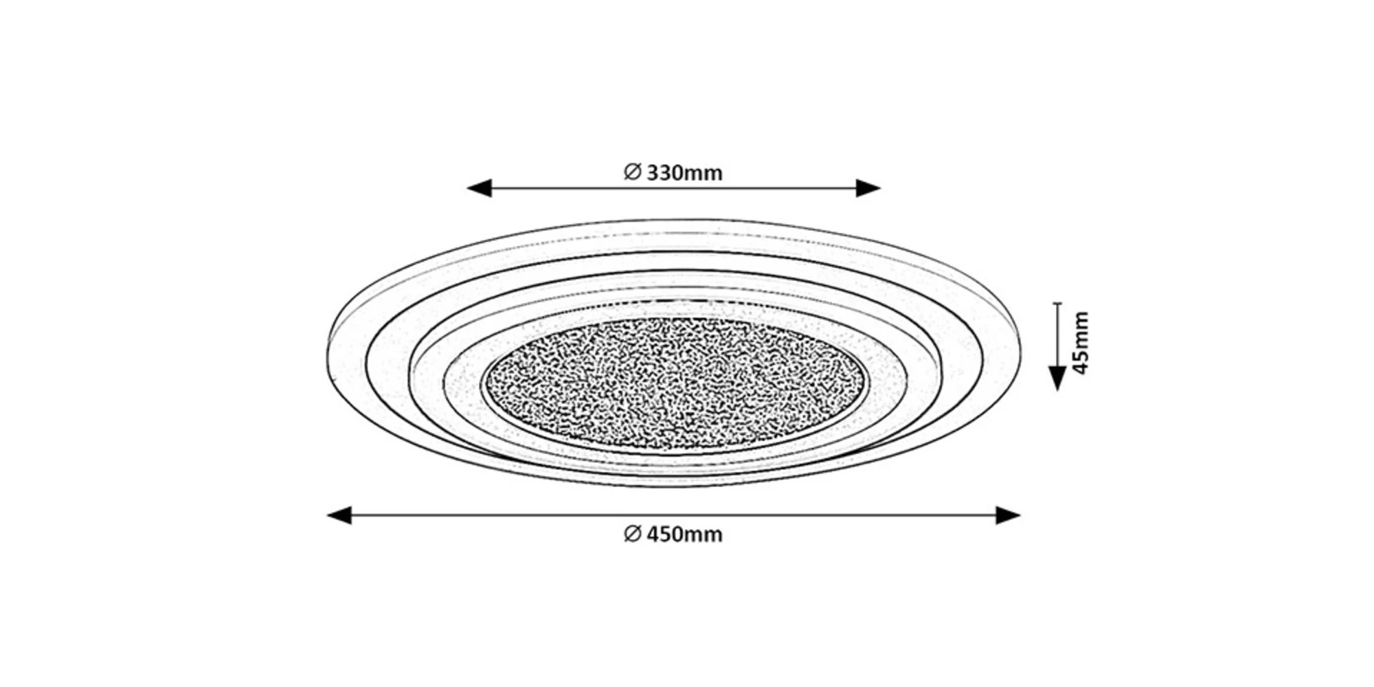 Cu un diametru de 450 mm și o distanță de numai 45 mm față de tavan, se integrează perfect în living sau dormitor, fără să aglomereze vizual încăperea. În ciuda aspectului minimalist, îți pune la dispoziție o putere reală: sursa LED integrată de 56W îți livrează 3050 lumeni cu abajur și nu mai puțin de 6440 lumeni fără abajur, suficient pentru a ilumina un spațiu încăpător. Te bucuri de o durată de viață estimată la 20.000 de ore, un consum ponderat de doar 56 kWh/1000h și o garanție generoasă de 5 ani, ceea ce îți confirmă rezistența și eficiența ei reală în timp.