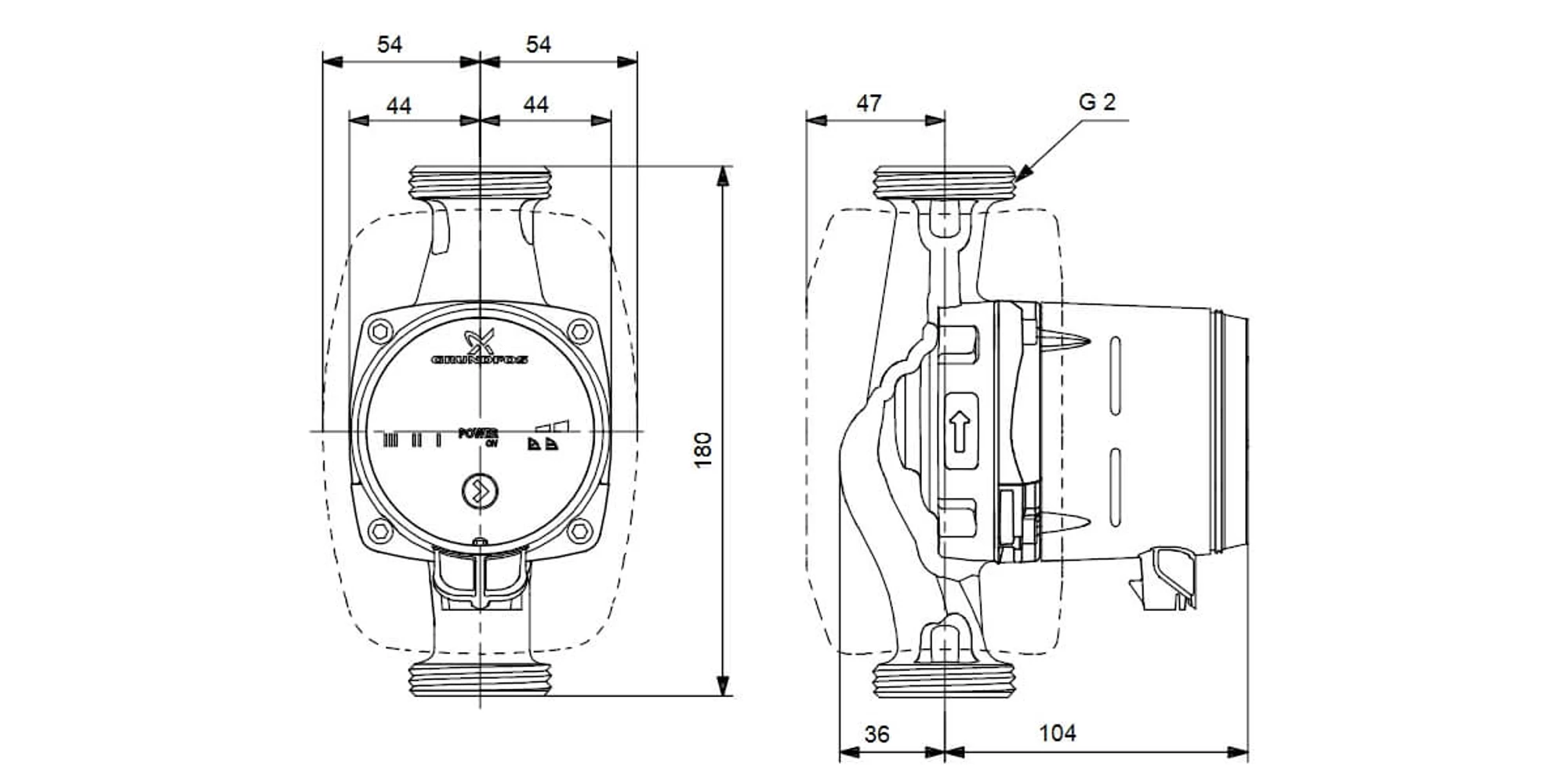 - Pompa este auto-aerisită prin sistem, ceea ce contribuie la o instalare ușoară.