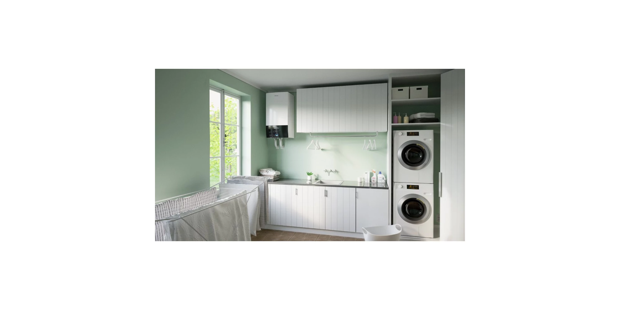 Această pompă de căldură Daikin Altherma 3 R W oferă și opțiuni suplimentare de combinații, putând fi combinată cu un rezervor din oțel inoxidabil sau un boiler ECH2O pentru furnizarea apei calde menajere.