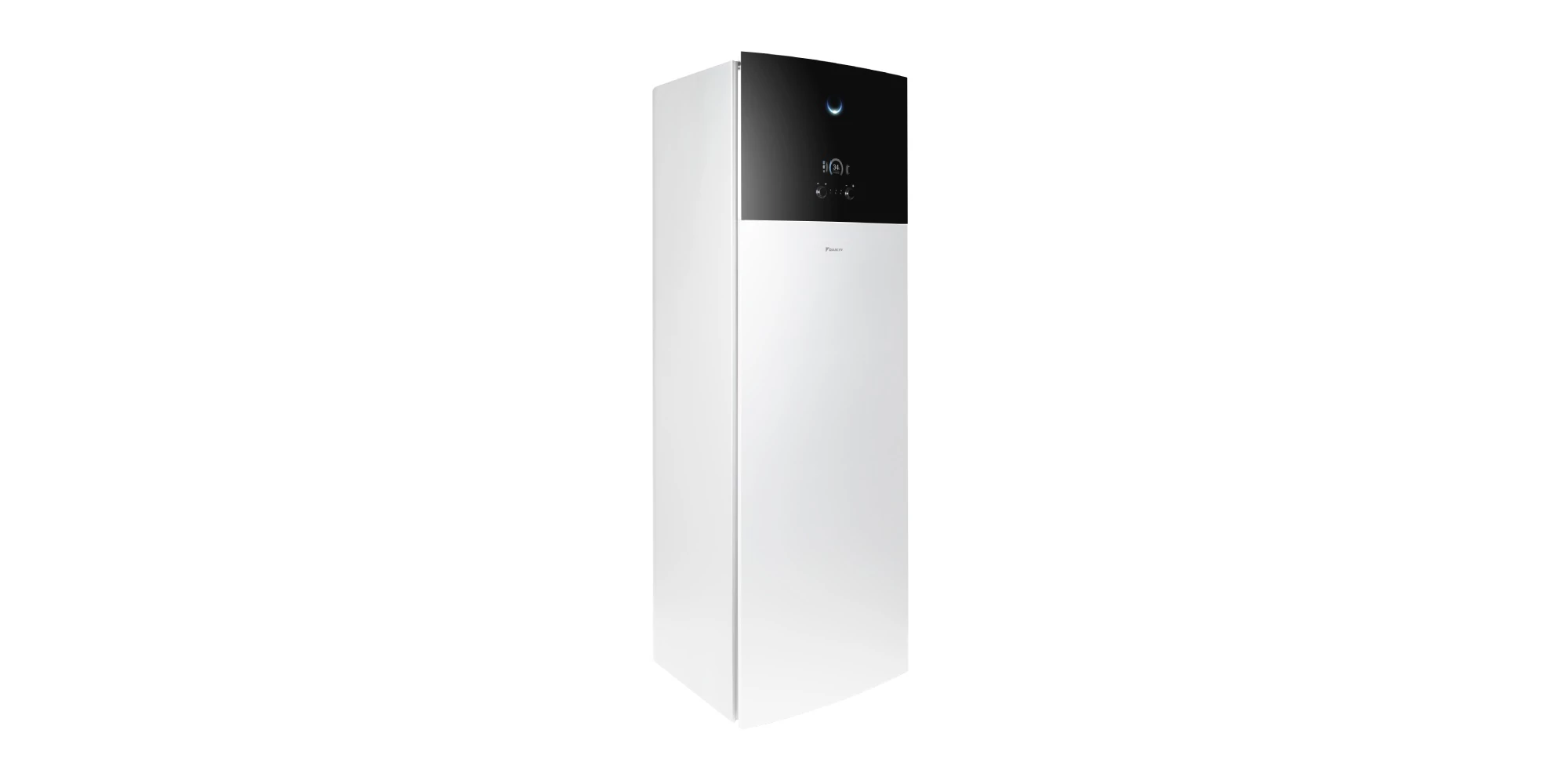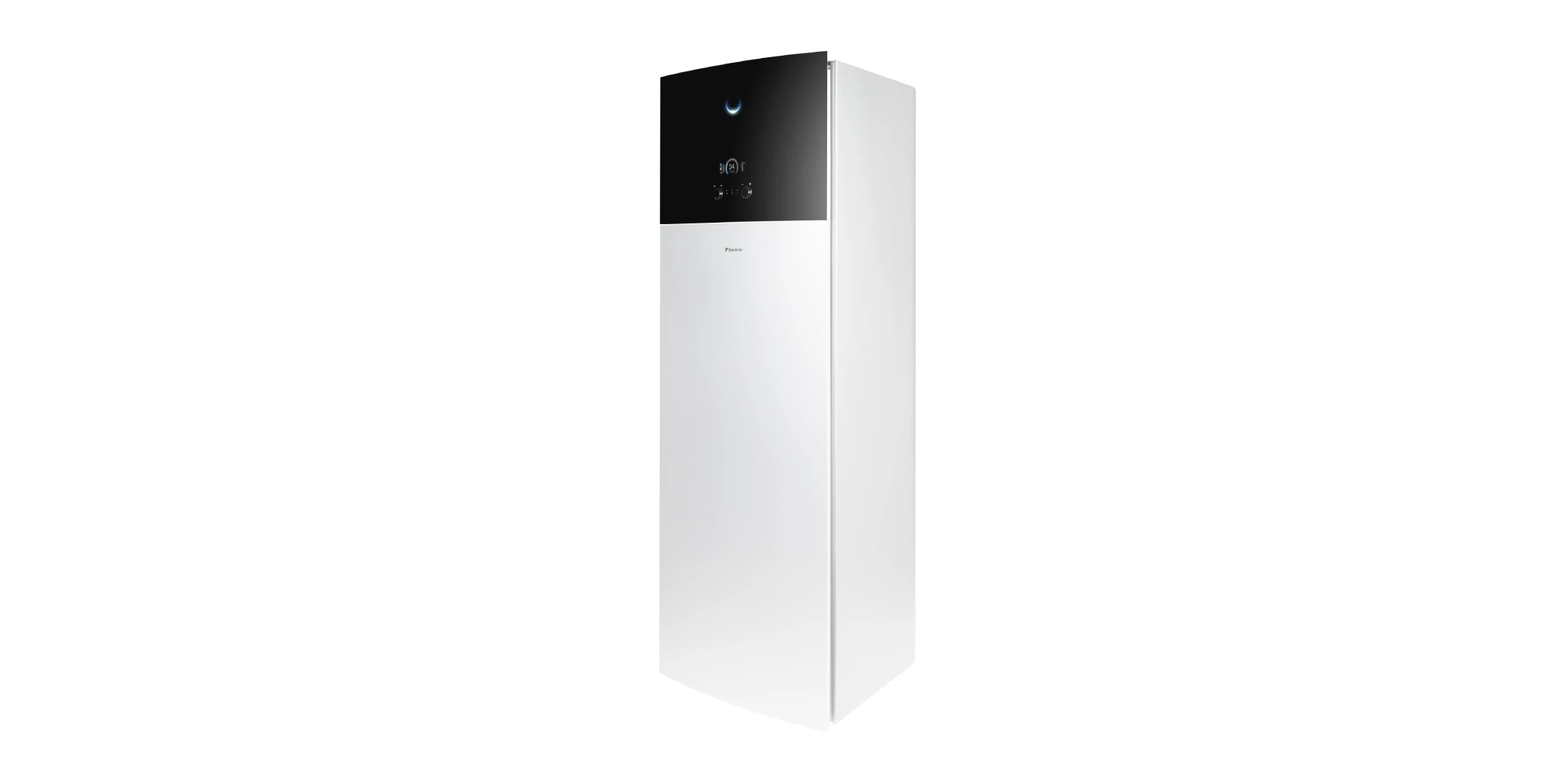 Interfața panoului frontal, numită Daikin Eye, oferă o utilizare simplă și intuitivă a pompei de căldură. Daikin Eye monitorizează starea de funcționare a pompei, indicând prin culoare informații relevante. Lumina albastră indică funcționarea corectă a centralei, în timp ce lumina roșie semnalează necesitatea unei lucrări de mentenanță.