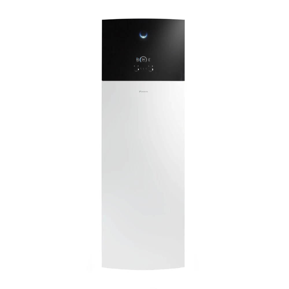 Sistemul este de tip aer-apă, cu o configurație tip split. Acest concept utilizează o unitate internă și una externă pentru a furniza temperaturi de până la 65°C fără a necesita un încălzitor suplimentar. Astfel, această pompă de căldură oferă un confort termic optim și apă caldă în mod eficient.
