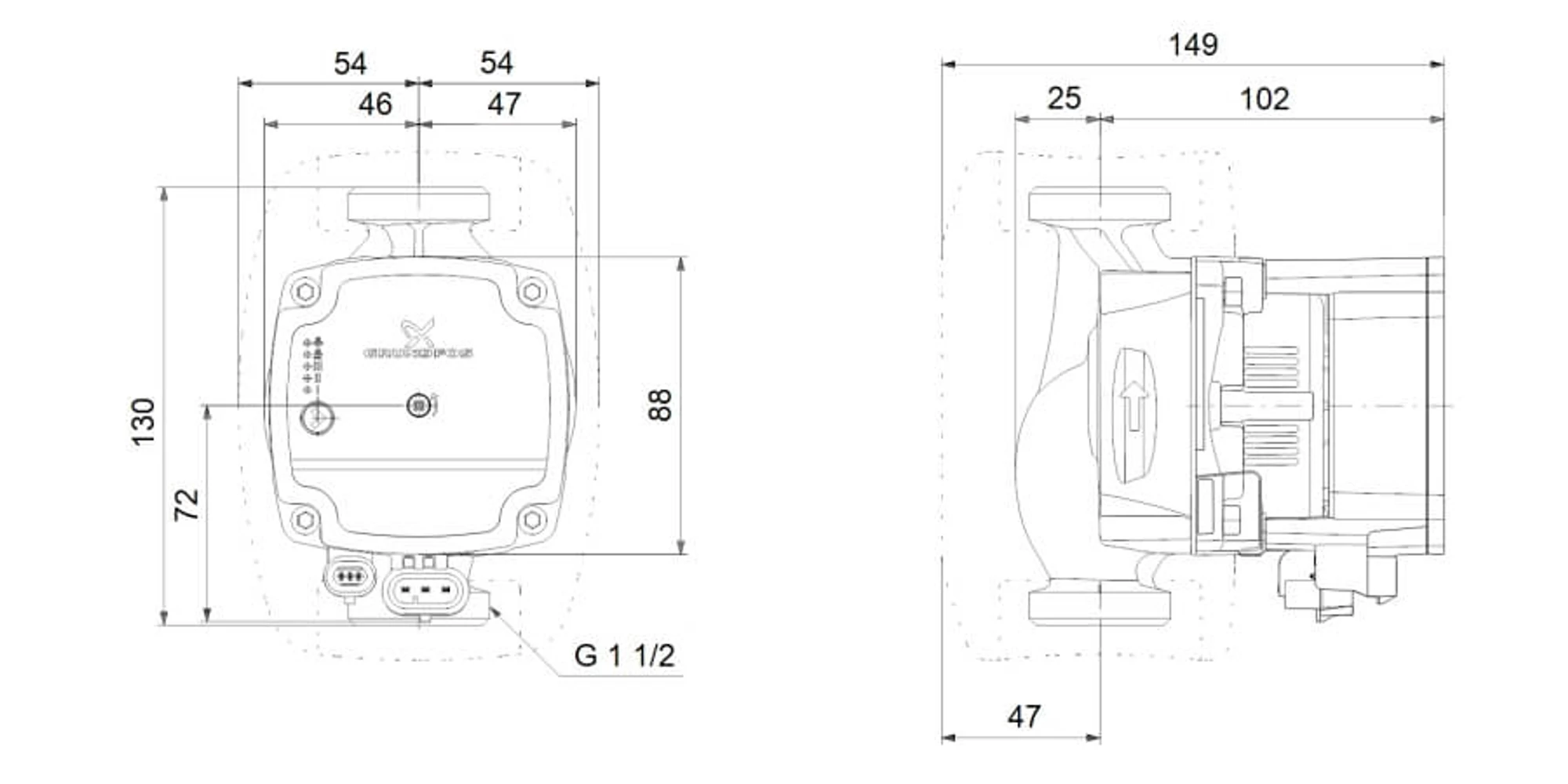 Pompa are două conexiuni electrice: sursa de alimentare și conexiunea semnalului de control.