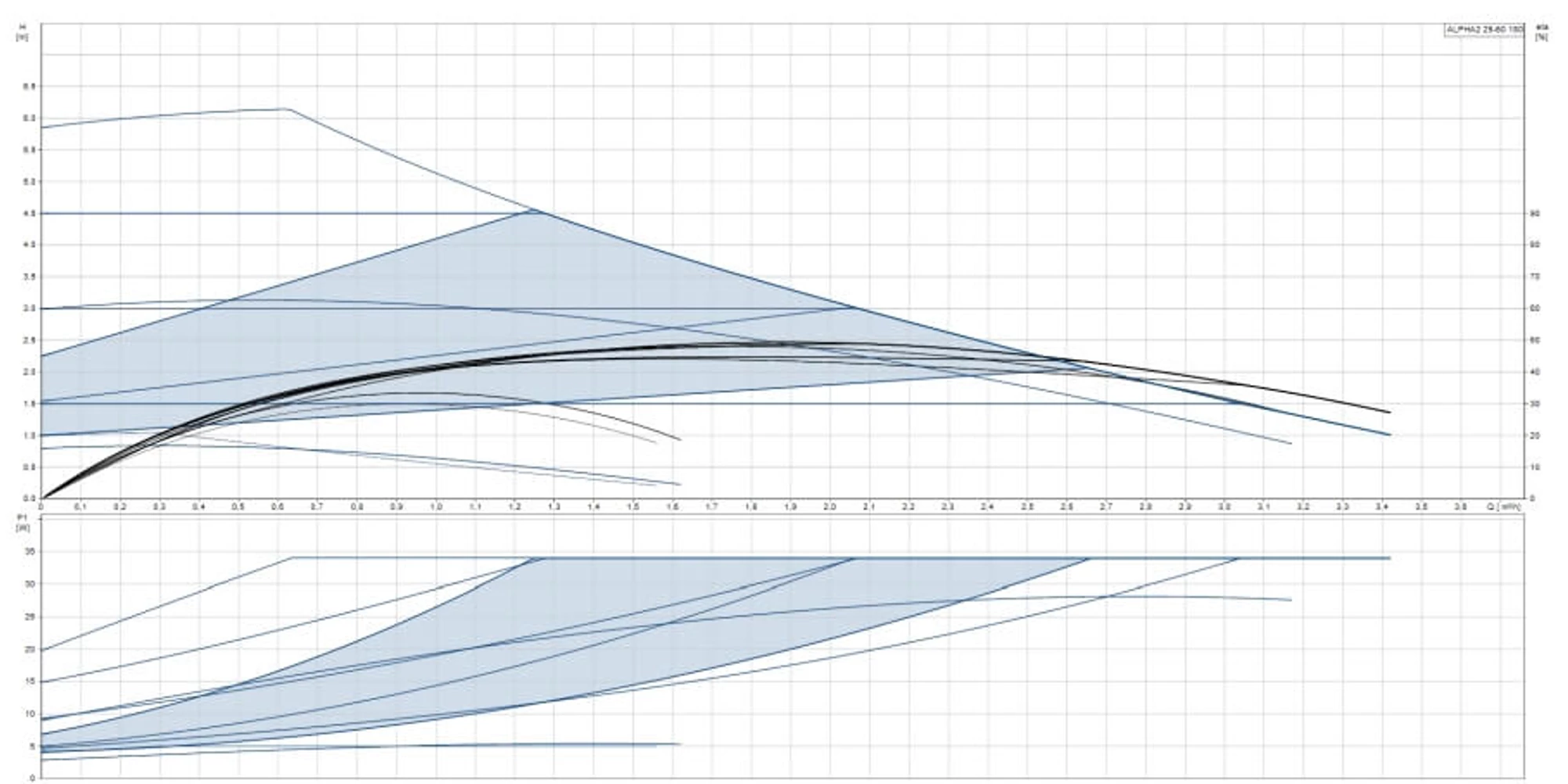Caracteristicile pompei de circulație 25-60 180, Grundfos Alpha2