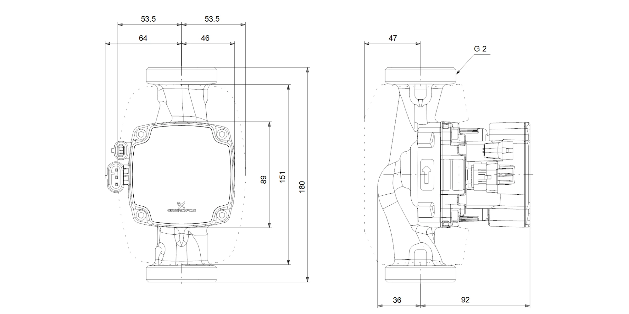 Pompa de recirculare apa calda GRUNDFOS ALPHA2 GO 32-60 180, 93074214, 37 W, H max. 3.26 m, Q max. 1.9 mc/h, 180 mm, 230 V