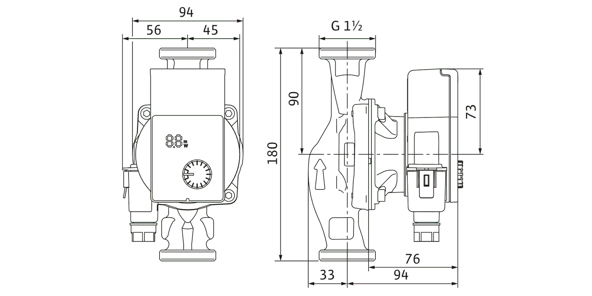 - Afișaj LED intuitiv – vezi în timp real înălțimea de pompare setată, consumul actual în watt, codurile de eroare sau funcția de aerisire.