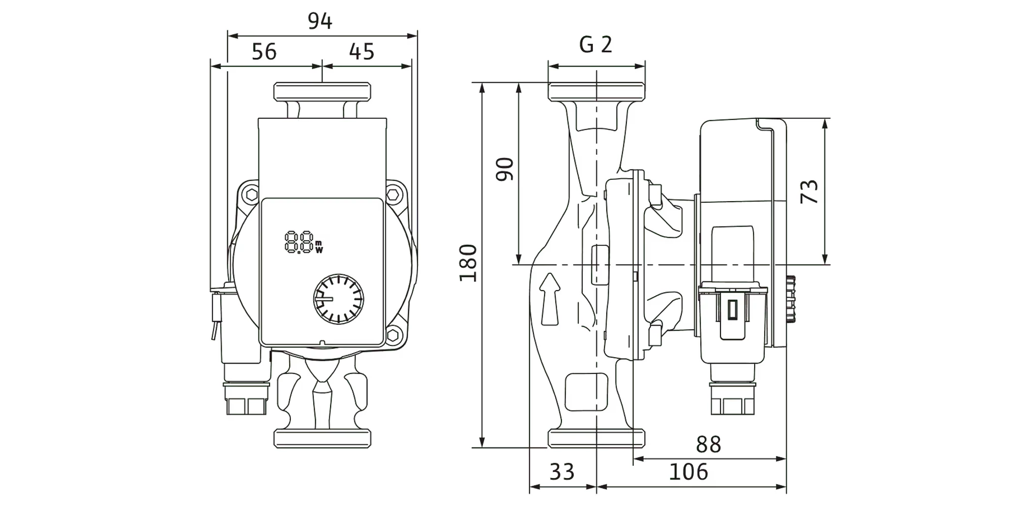 - Display LED segmentat: vezi clar înălțimea de pompare setată, consumul actual în wați și eventualele coduri de eroare.