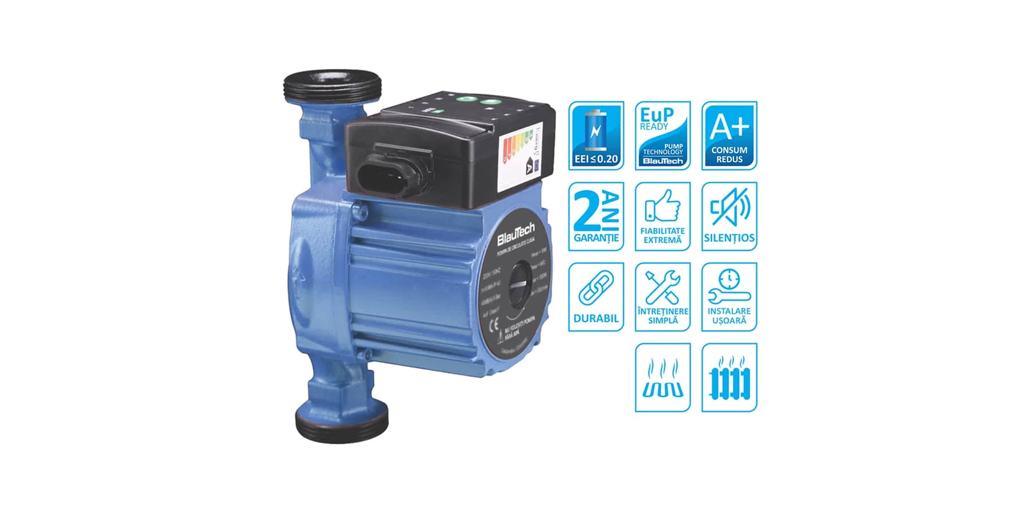 Pompele BlauTech Clasa A au incorporate un motor electric cu magnet permanent si sistem de control pentru functionare la diferenta de presiune constanta ceea ce asigura ajustarea continua a puterii pompei in functie de cerintele momentane ale sistemului.