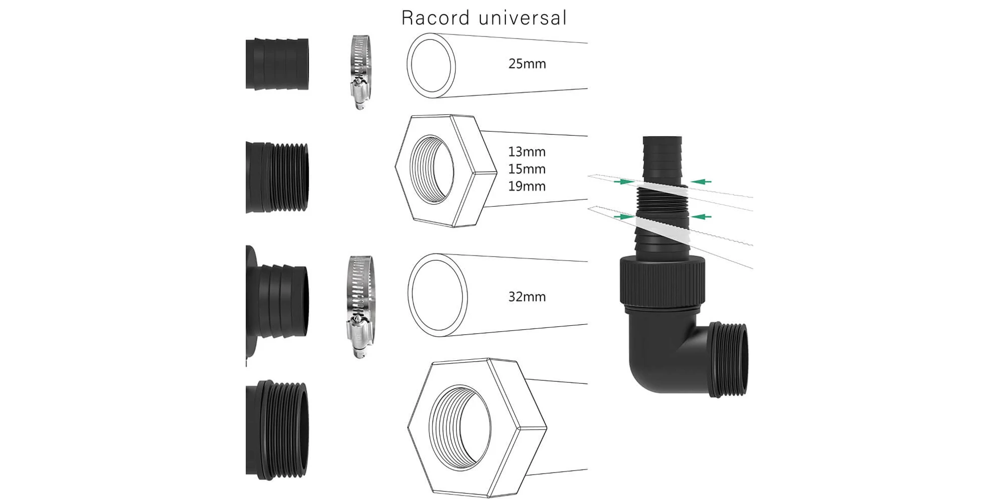 Pompa este echipată cu racord cu filet de mai multe dimensiuni. Trei dimensiuni diferite pentru ieșire pentru a alege în funcție de debit.