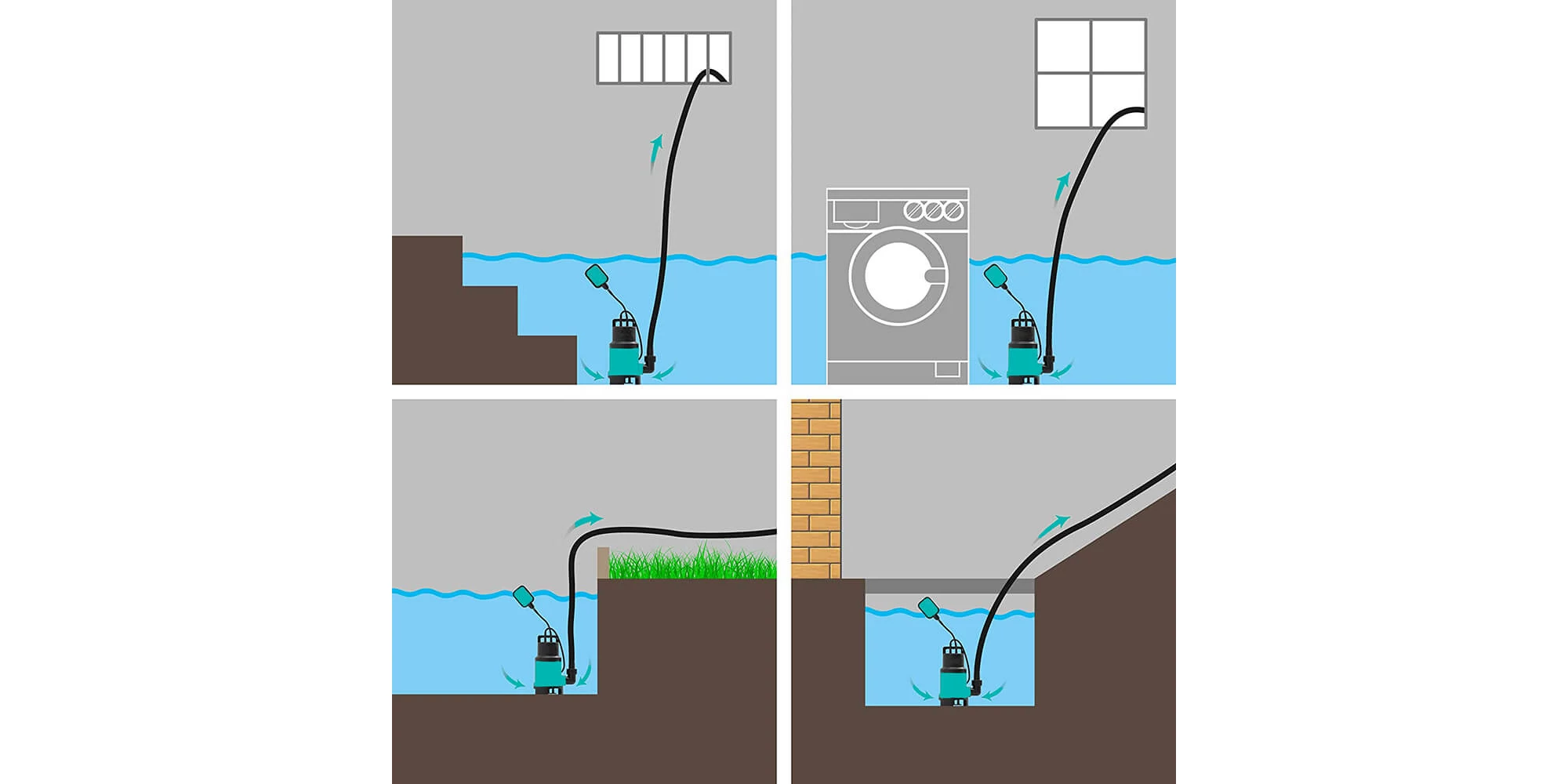 Îndepărtați apa stagnantă din orice mediu, potrivită pentru utilizare în grădini, acoperișuri plate, piscine, fântâni, subsoluri inundate și drenaj în aplicații tipice de transfer de apă rezidențială sau comercială.