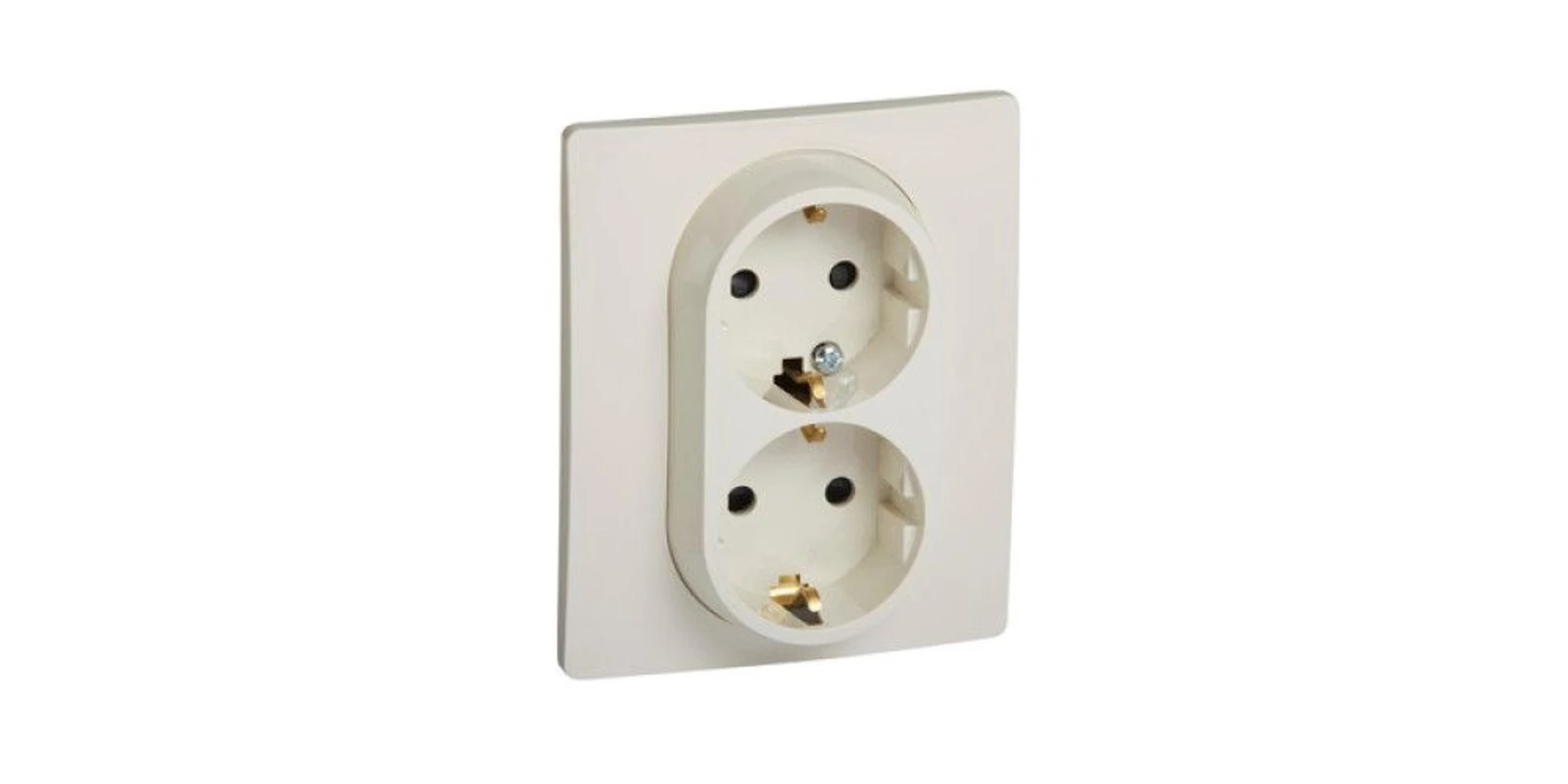 Este o priza electrica dubla, de culoare bej, ce se monteaza incastrat. Aceasta detine contact de protectie oferind un plus de siguranta.