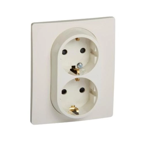 Priza dubla cu impamintare, contact mecanic cu arc, pentru uz interior. Culoare bej