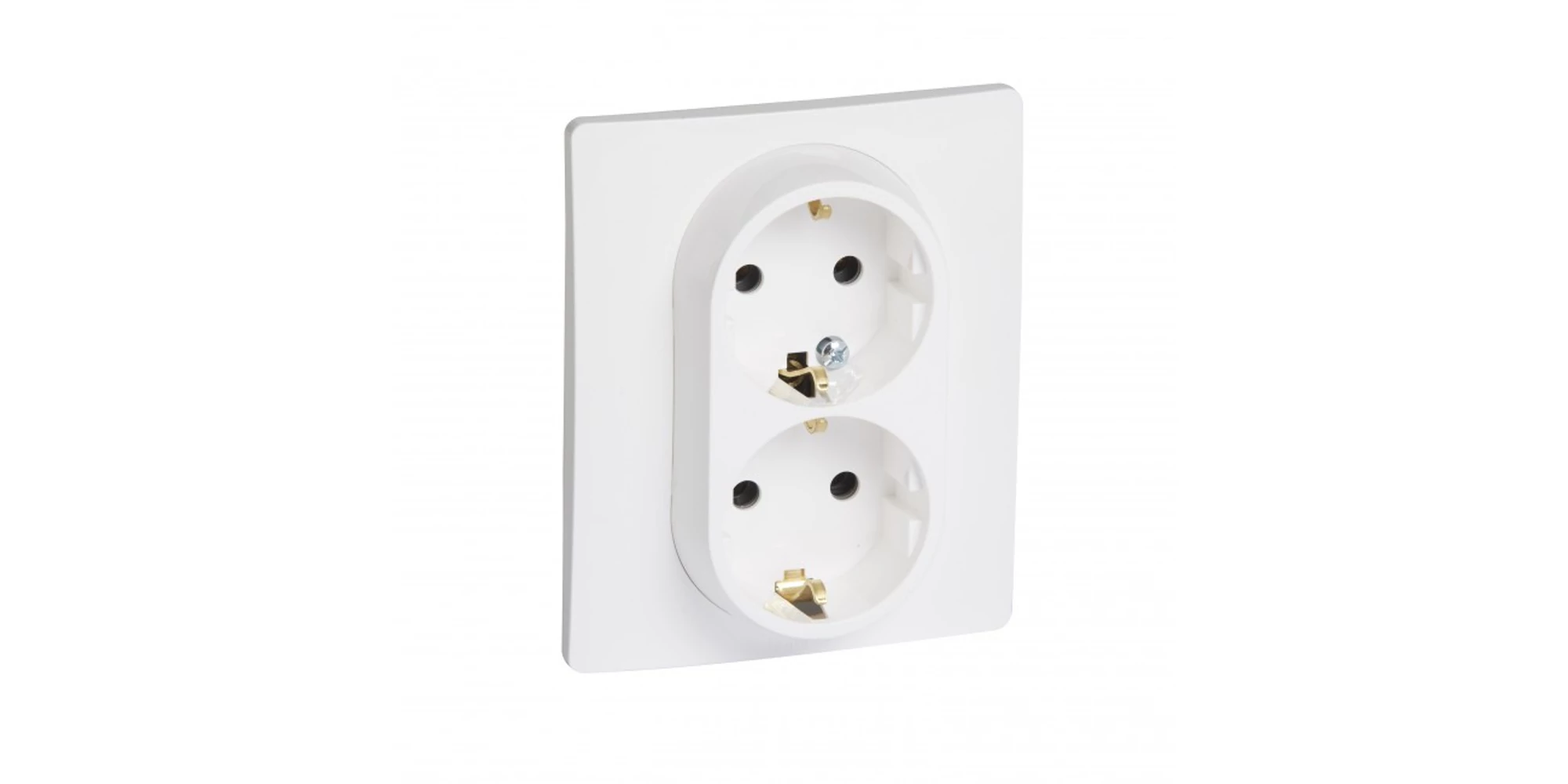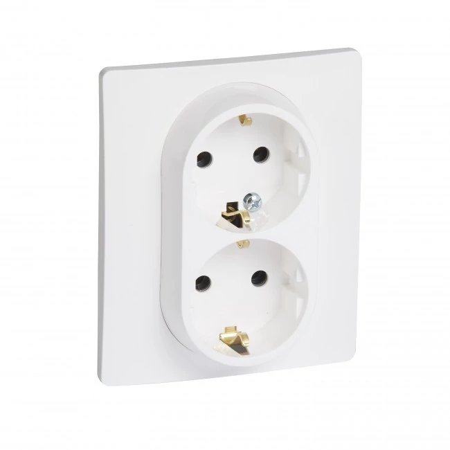 Este o priză electrică dublă, de culoare albă, ce se montează incastrat. Aceasta deține contact de protecție oferind un plus de siguranță.
