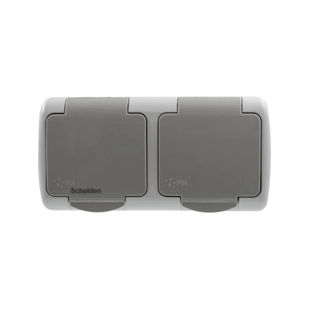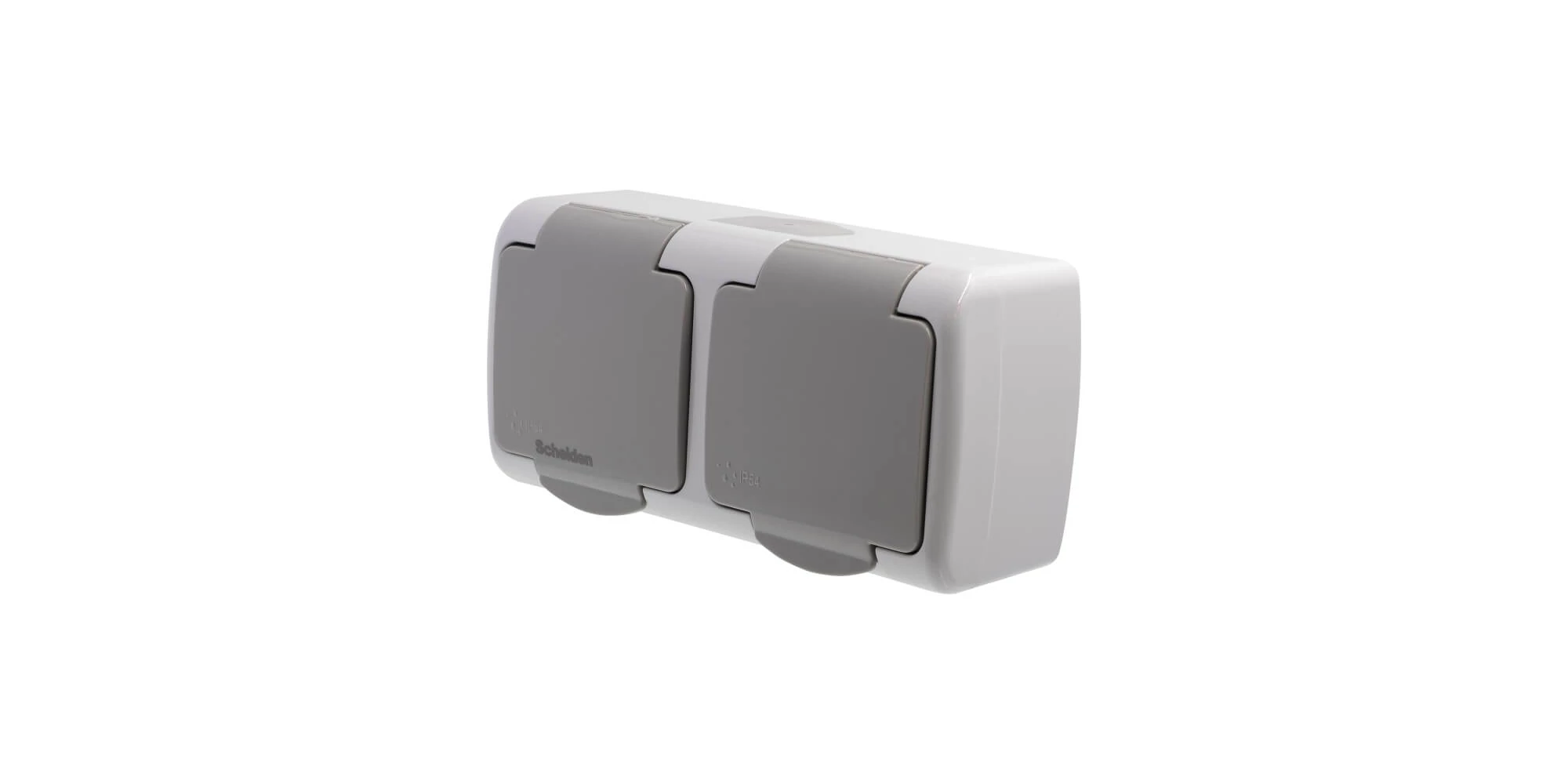 Prizele duble PT IP54, 8005E-55CP, SCHELDEN sunt utilizate pentru funcționarea echipamentelor care utilizează energie electrică. Prizele sunt potrivite pentru montare aparent pe perete.