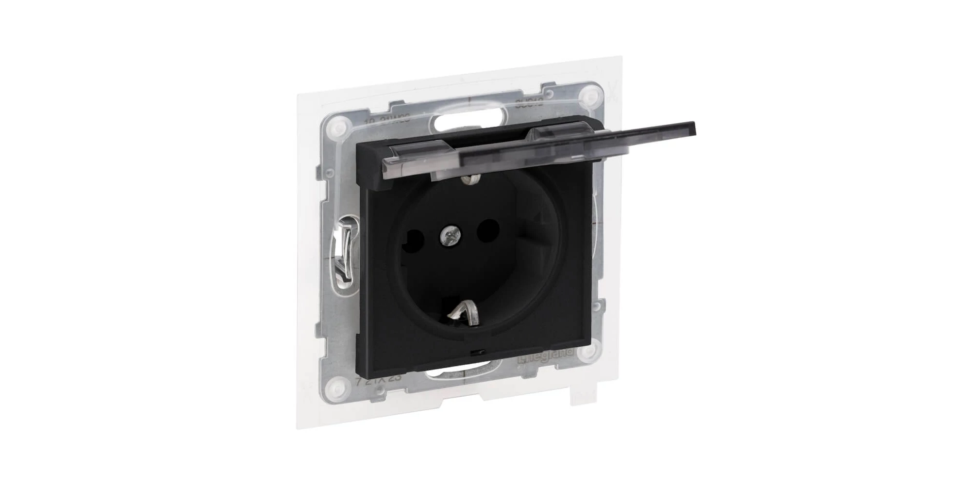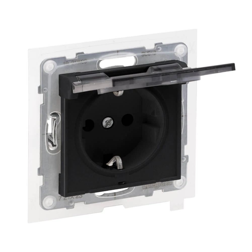 Priza simpla cu capac, 2P+T 16A, IP44, negru, SUNO, 721423, Legrand | 60410709 | 45,90 Lei | Prize | Confort prin instalații de calitate | Melinda InstalSpecificații tehnice