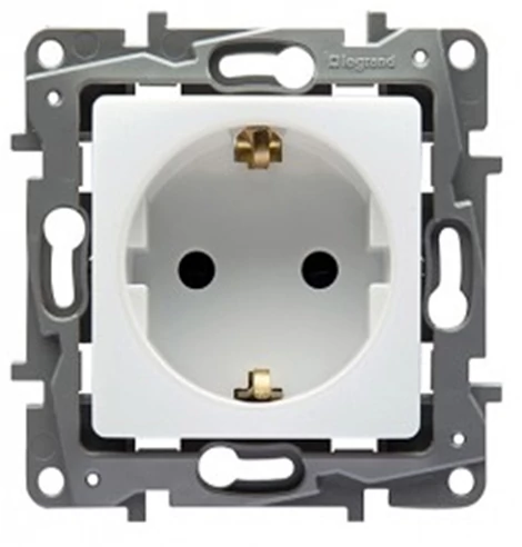 Priza simpla cu impamintare, contact mecanic cu arc, pentru uz interior, LEGRAND, NILOE