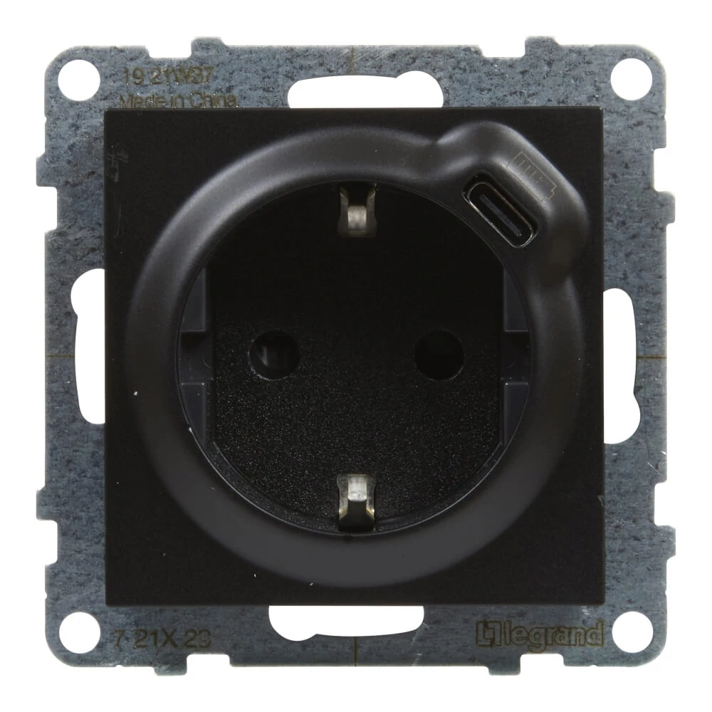 Priza simpla cu USB tip C, 16A, negru, SUNO, 721429, Legrand | 60410711 | 180,98 Lei | Prize | Confort prin instalații de calitate | Melinda InstalSpecificații tehnice