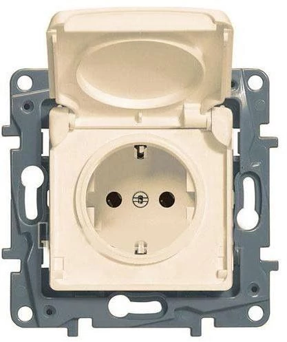 Este o priza electrica simpla cu capac, de culoare bej, ce se monteaza incastrat. Aceasta detine contact de protectie oferind un plus de siguranta.