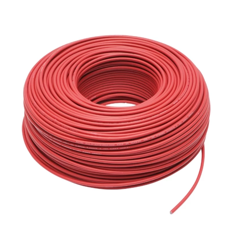Cablu electric pentru sisteme fotovoltaice, cupru stanat 1 x 4 mm, roșu, de tensiune nominală, Uo/U 600/1000Vac, este un produs de înaltă calitate, conceput pentru a fi utilizat în sisteme fotovoltaice pentru a interconecta diferite elemente, cum ar fi modulele solare și invertorul. Acest cablu este construit dintr-un conductor flexibil de cupru stanat, clasa 5, conform SR CEI 60228, cu o izolație de PVC tip TI4 conform SR HD 21.1 S4: 2004, de culoare neagra, și o manta de PVC tip TM4 conform SR HD 21.1 S4:2004, de culoare roșie.
