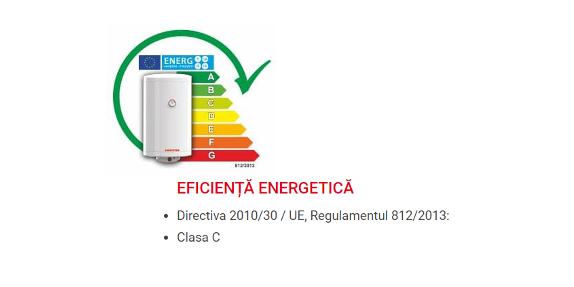 Rezervorul P 1000 îndeplinește cerințele Directivei 2010/30/UE și ale Regulamentului 812/2013, fiind clasificat în Clasa C de eficiență energetică. Această clasificare reflectă angajamentul producătorului pentru eficiență și economisirea energiei.