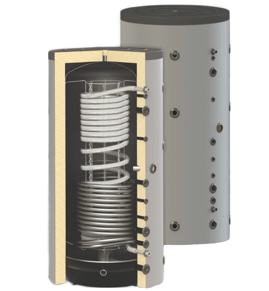 Rezervor de acumulare 1000 l, cu 1 serpentina pentru incalzire si cu 1 serpentina pentru prepararea apa calda menajera, SUNSYSTEM
