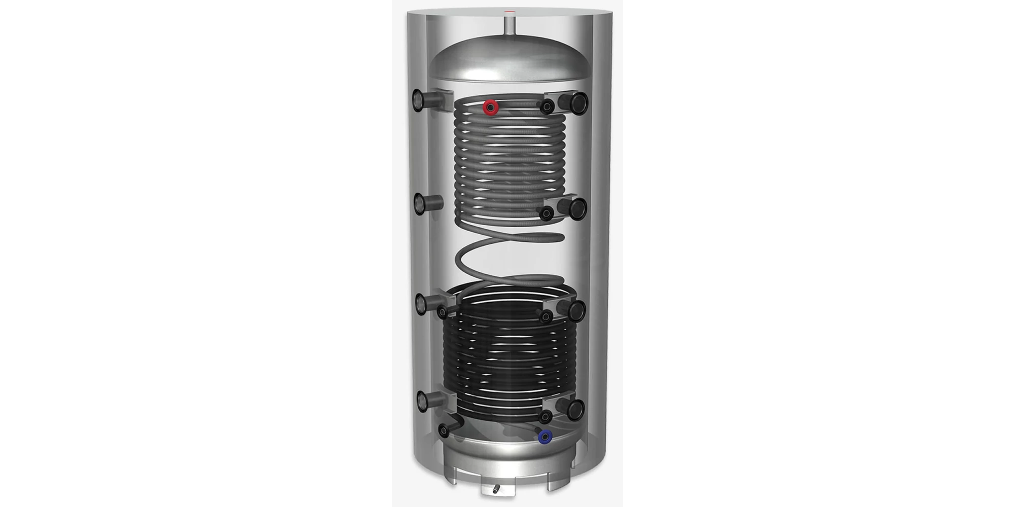 Rezervor de acumulare 750 l, cu 1 serpentina pentru incalzire si cu 1 serpentina pentru prepararea apa calda menajera, PT750CFErP, Hajdu