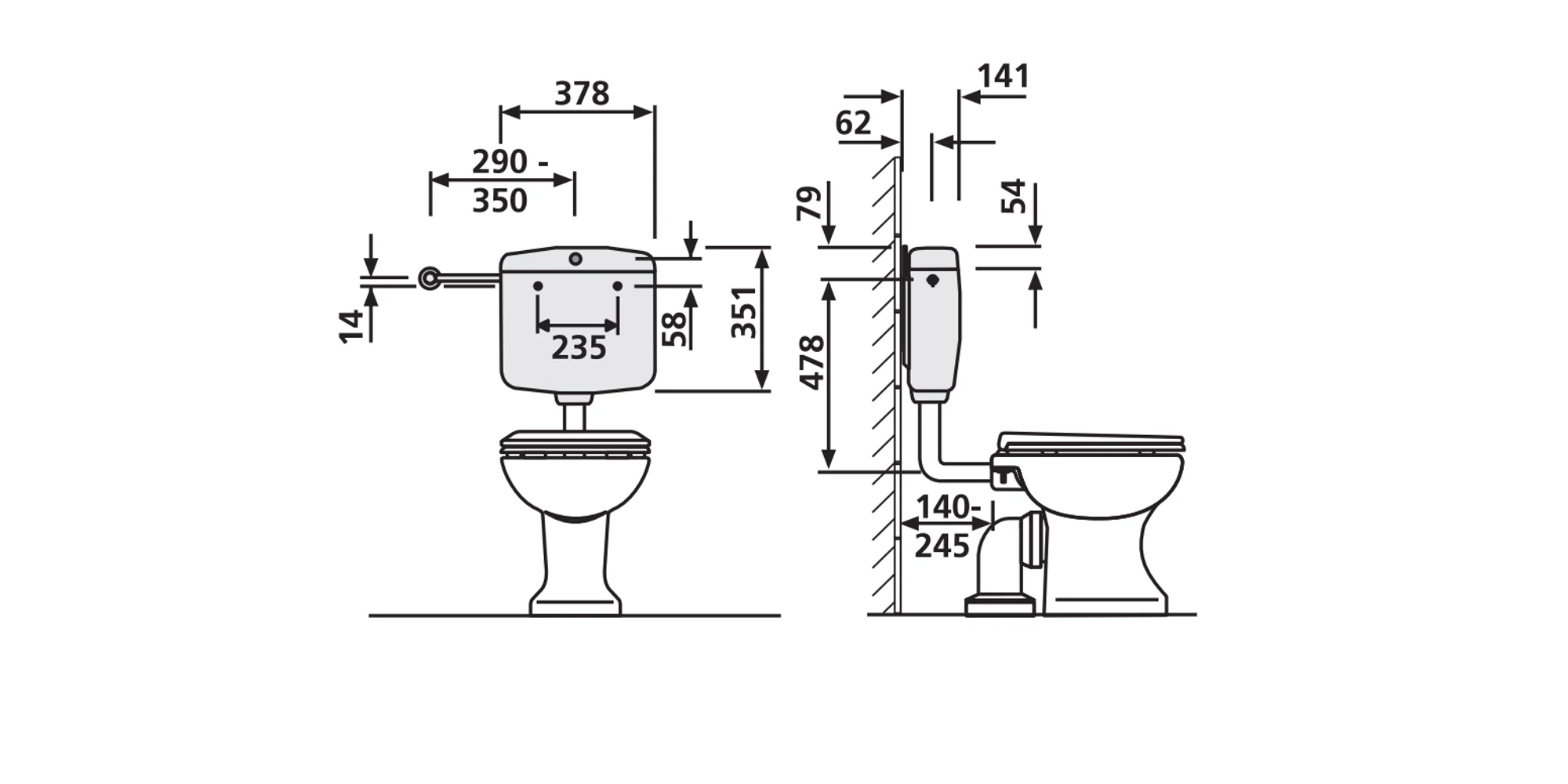 Rezervor WC pentru montaj la semi-inaltime cu funcţie Start/Stop.