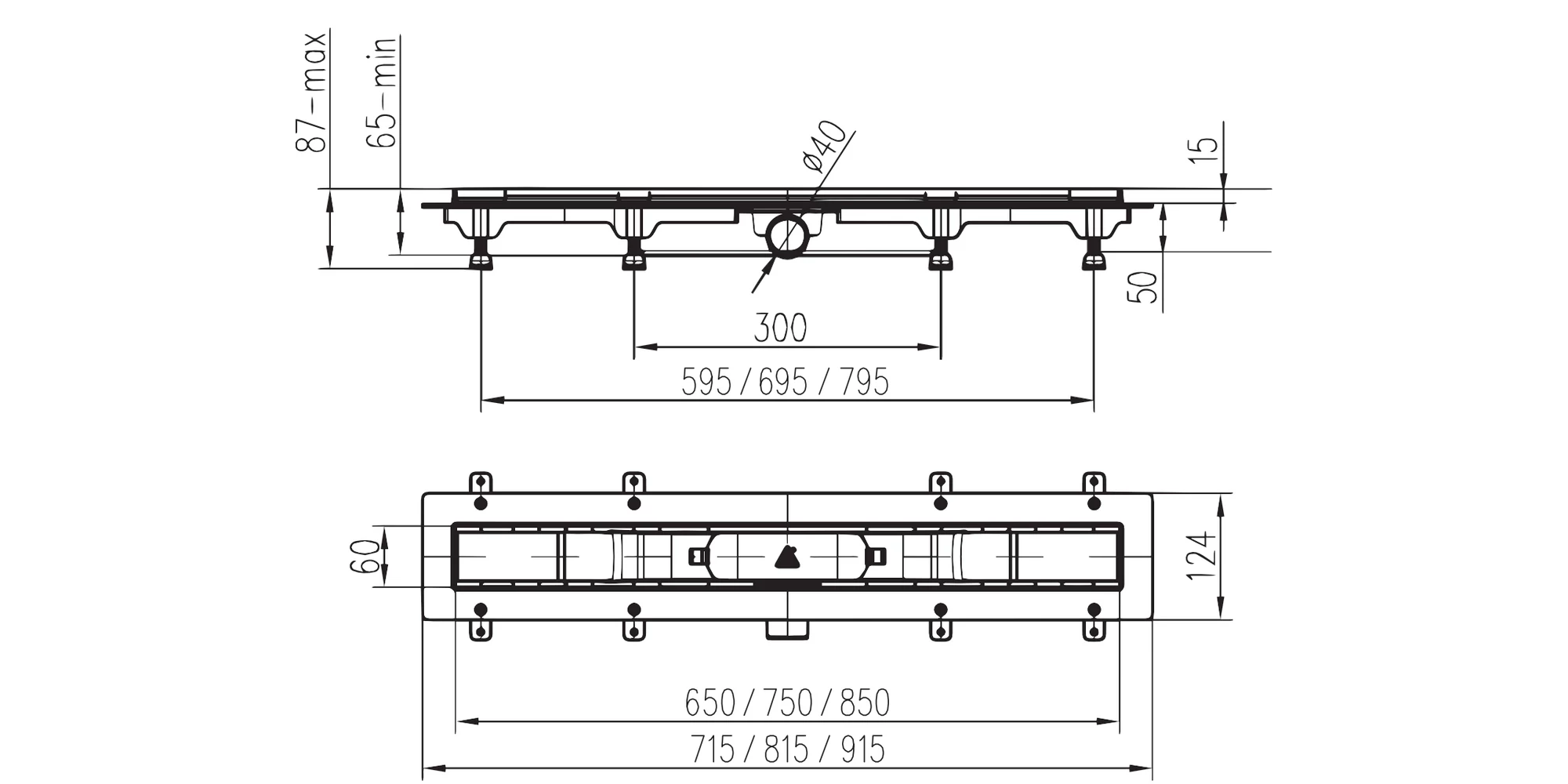 Rigolă de duș liniară, 850 mm, ramă de plastic, grilă inox STANDARD, negru mat, 675026, LIV | 11620451 | 339,99 Lei | Rigole dus | Confort prin instalații de calitate | Melinda InstalSpecificații tehnice