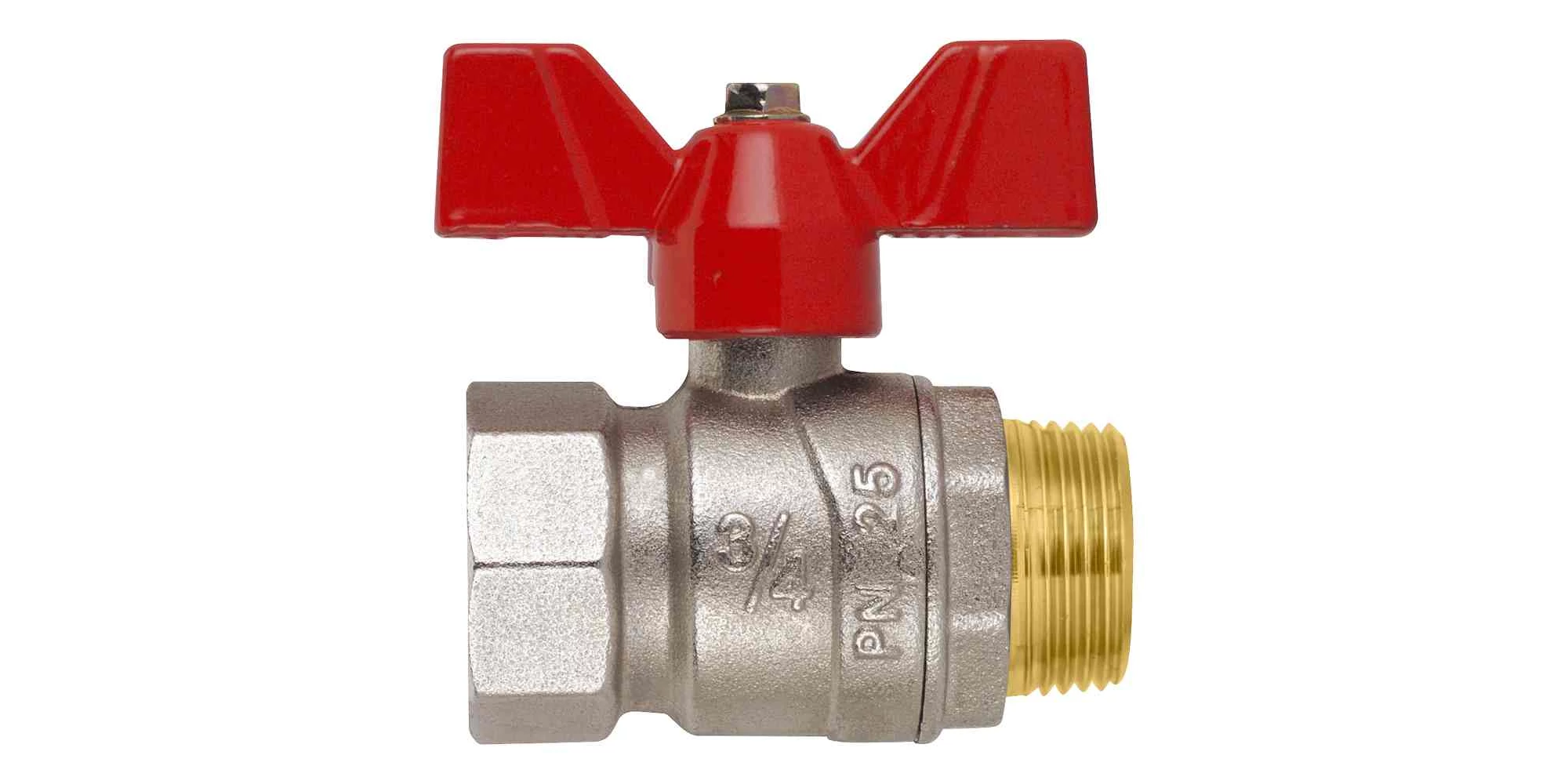 Robinet de trecere pentru apă cu bilă și fluture, DN 1/2", FIV, filet interior-exterior cu obturator sferic pentru apă, se utilizează în instalațiile de alimentare cu apă rece și apă caldă de consum, în instalațiile de încălzire sau de climatizare aferente clădirilor civile și industriale, totodată pot fi folosite pentru orice fluid neagresiv aliajelor de cupru.