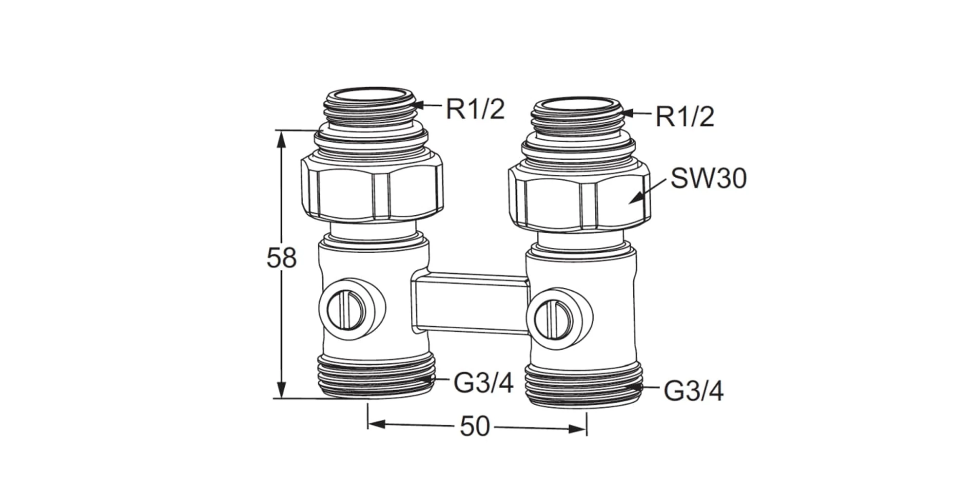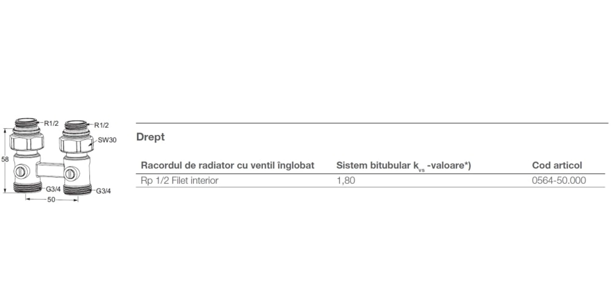 - Proiectat pentru sisteme bitubulare, cu racorduri de R1/2 şi G3/4 în conformitate cu EN 16313 (Eurocone). Toleranța de ±1.0 mm se obține cu sistemul cu piuliță olandeză și garnitură plană flexibilă, sistem care detensionează racordul de legătură.