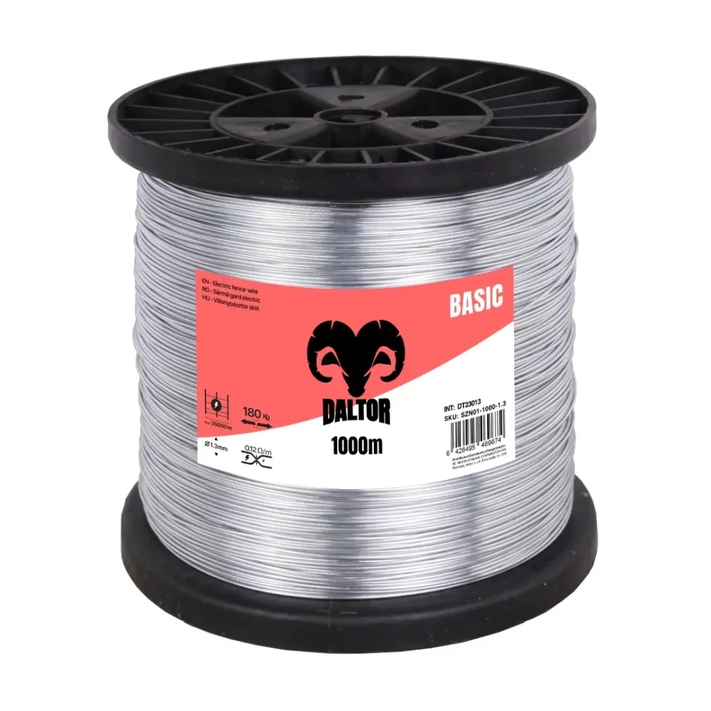 Sarma zincata gard electric DALTOR 1.3 mm 1000 m 180 kg cal. 2 | 64910103 | 155,56 Lei | Conductori pentru gard electric | Confort prin instalații de calitate | Melinda InstalSpecificații tehnice