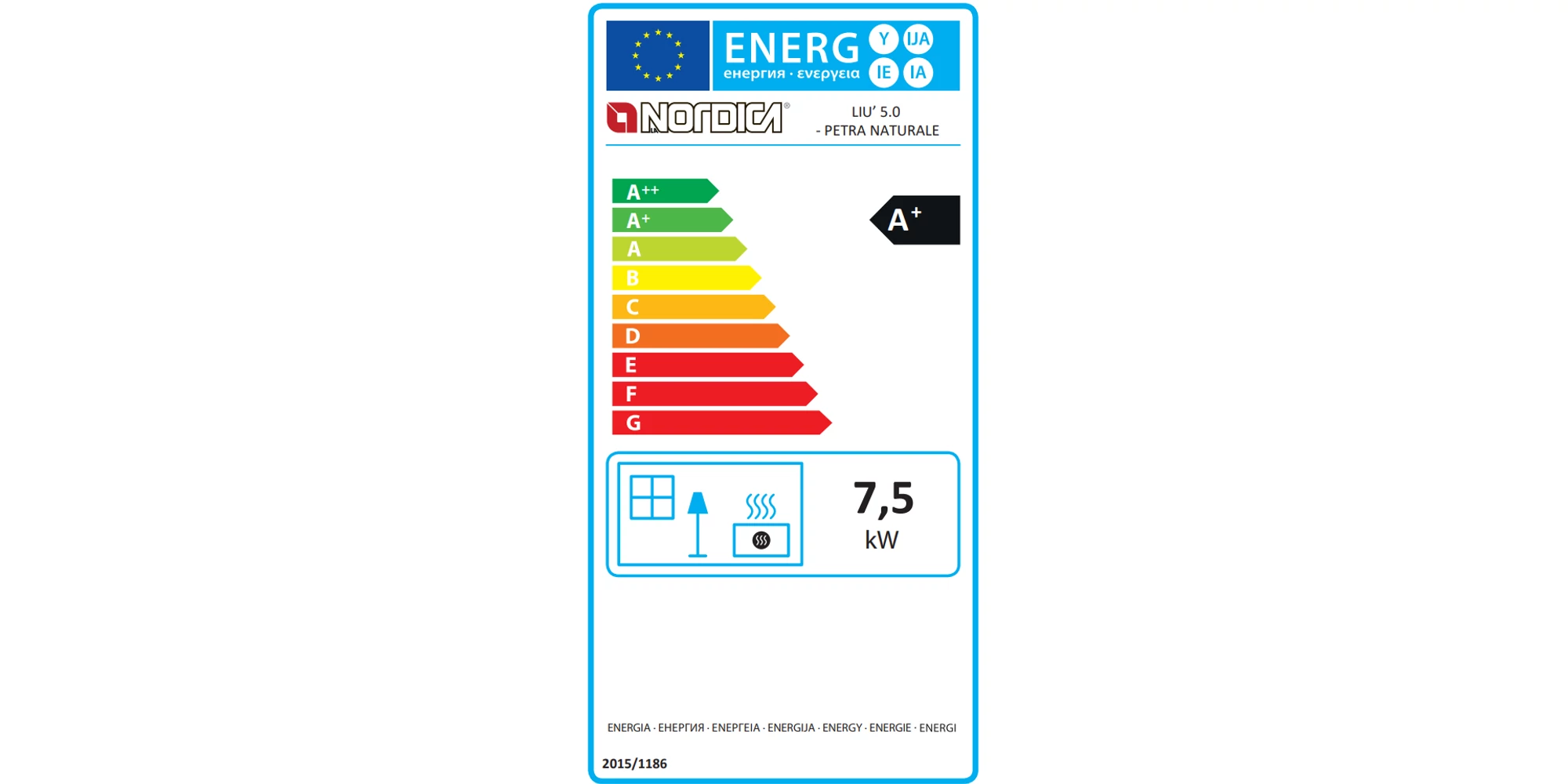Șemineu pe lemne, 7.5 kW, pentru 215 m3, cu geam panoramic curbat de mare dimensiune, suprafață din piatră naturală, LIU' 5.0 PETRA, La Nordica-Extraflame | 11910044 | 12.302,35 Lei | Seminee | Confort prin instalații de calitate | Melinda InstalSpecificații tehnice