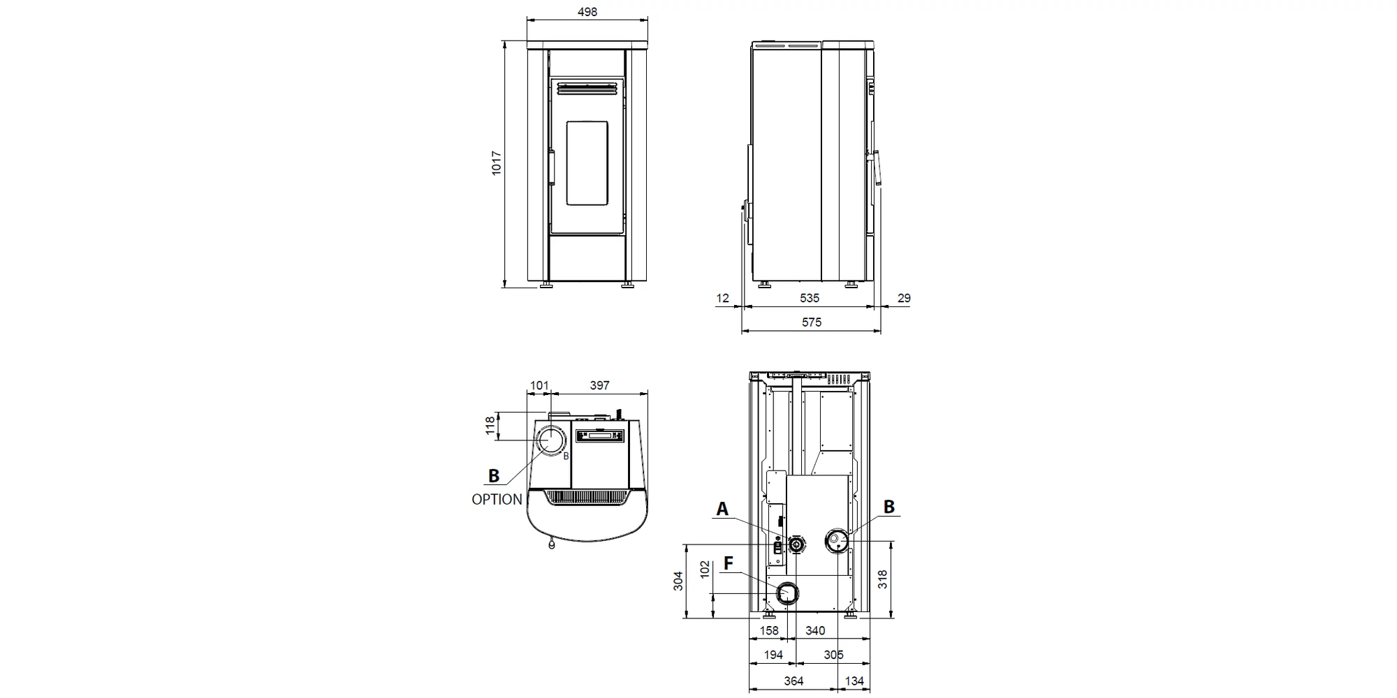 Cu dimensiuni de 498 x 1017 x 538 mm și o greutate netă de 103 kg, Klaudia Plus se integrează perfect în orice încăpere, fără să ocupe mult spațiu. Posibilitățile multiple de ieșire a fumului – fie pe spate, fie pe partea superioară – îți oferă flexibilitate maximă în instalare.