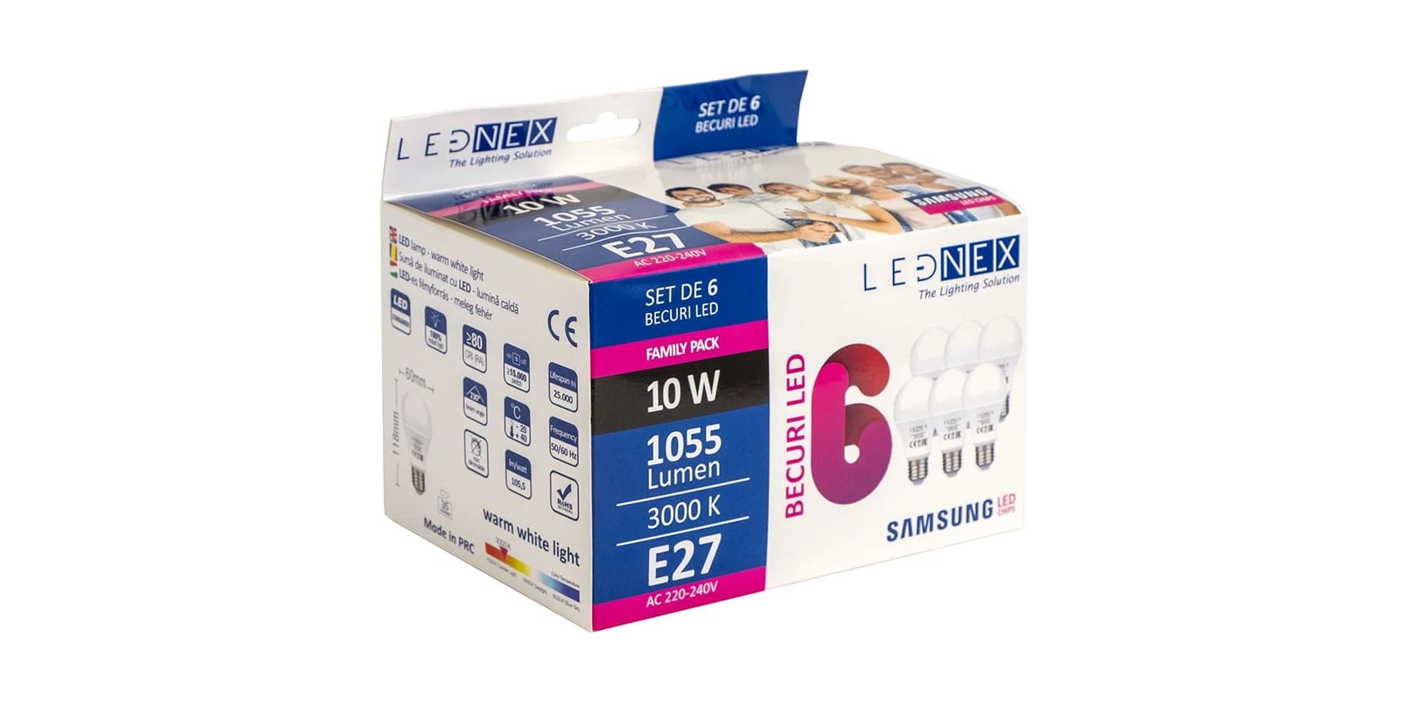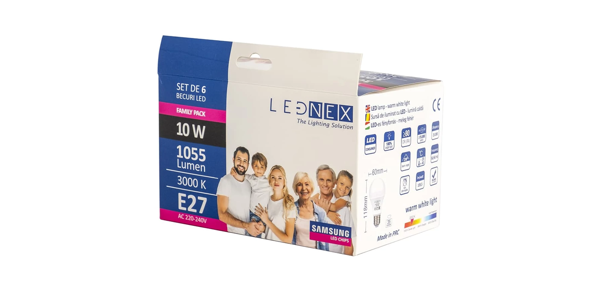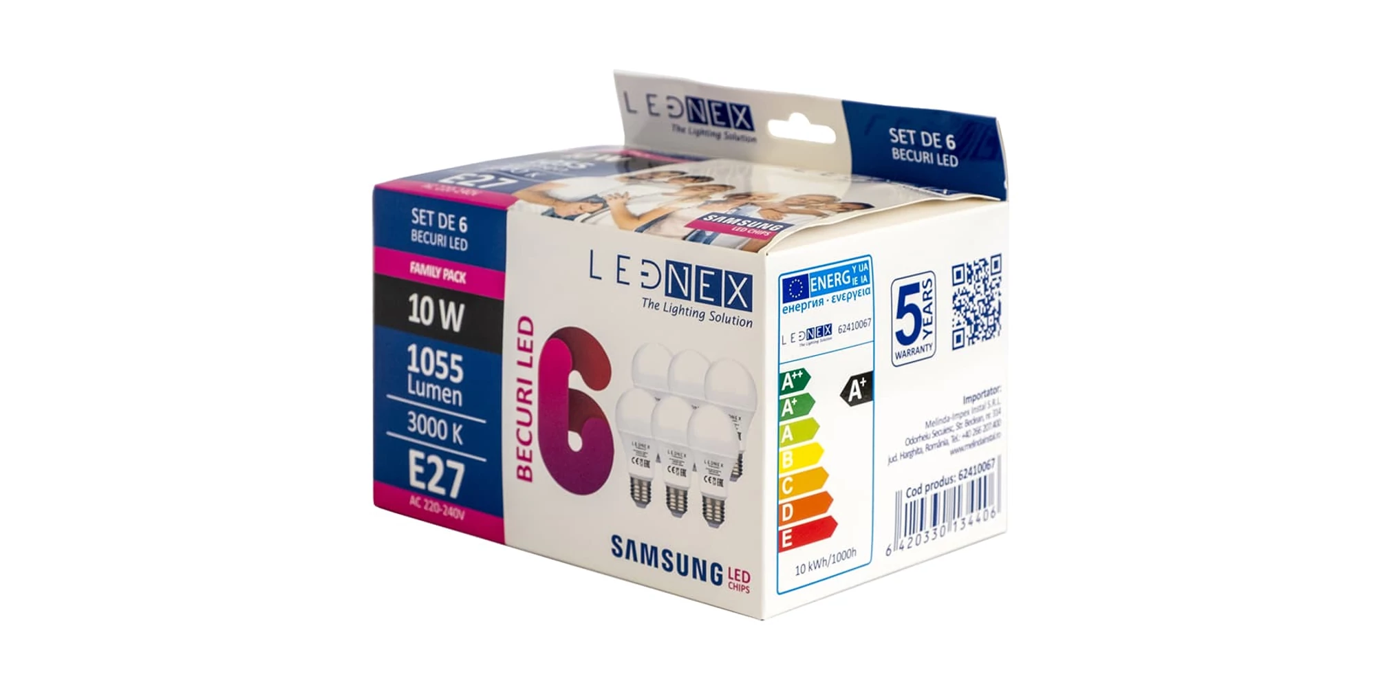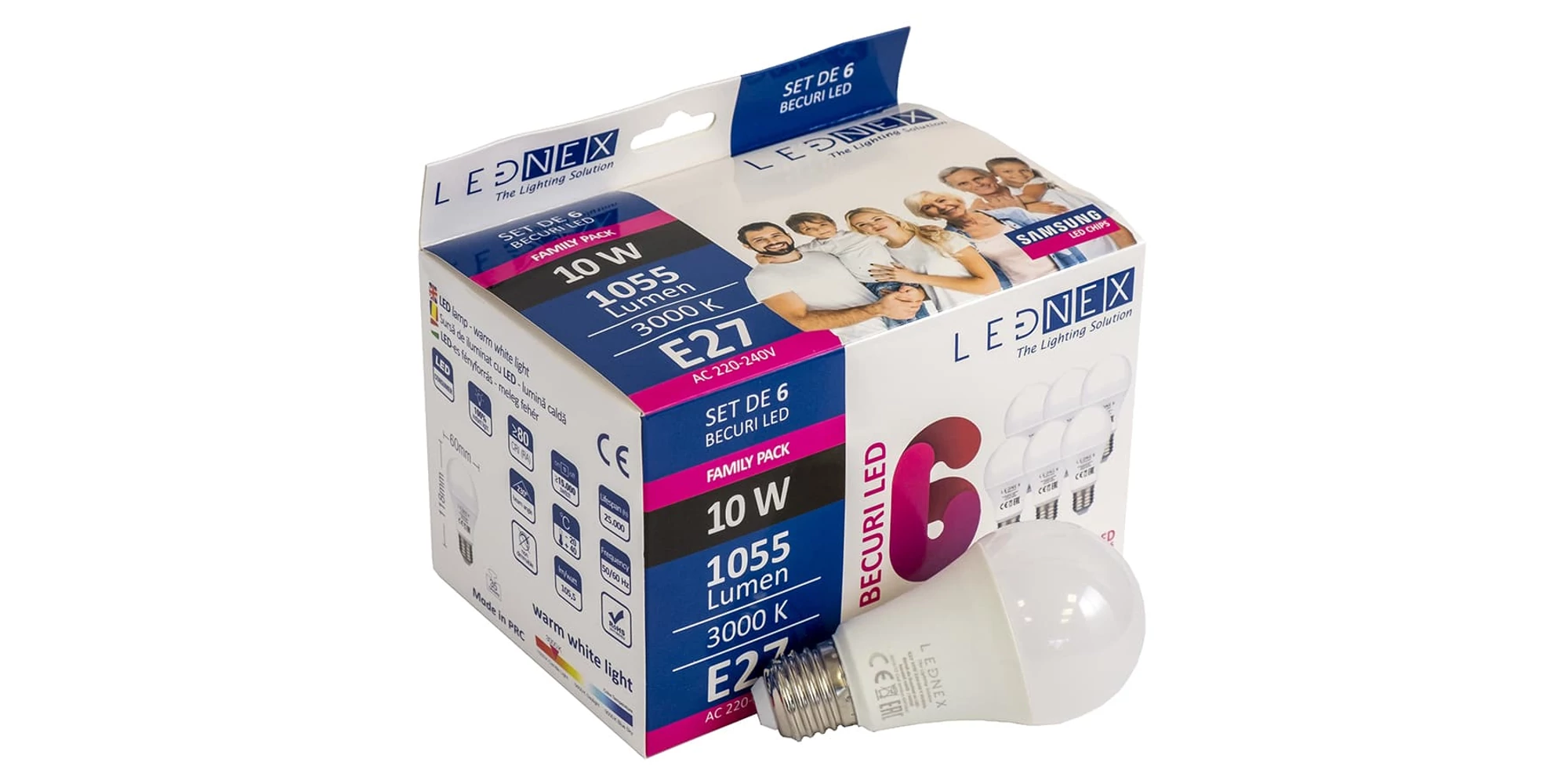 Set de 6 becuri LED, E27 10W 3000K, A60 LEDNEX | 62410067 | 39,14 Lei | Becuri LED | Confort prin instalații de calitate | Melinda InstalSpecificații tehnice