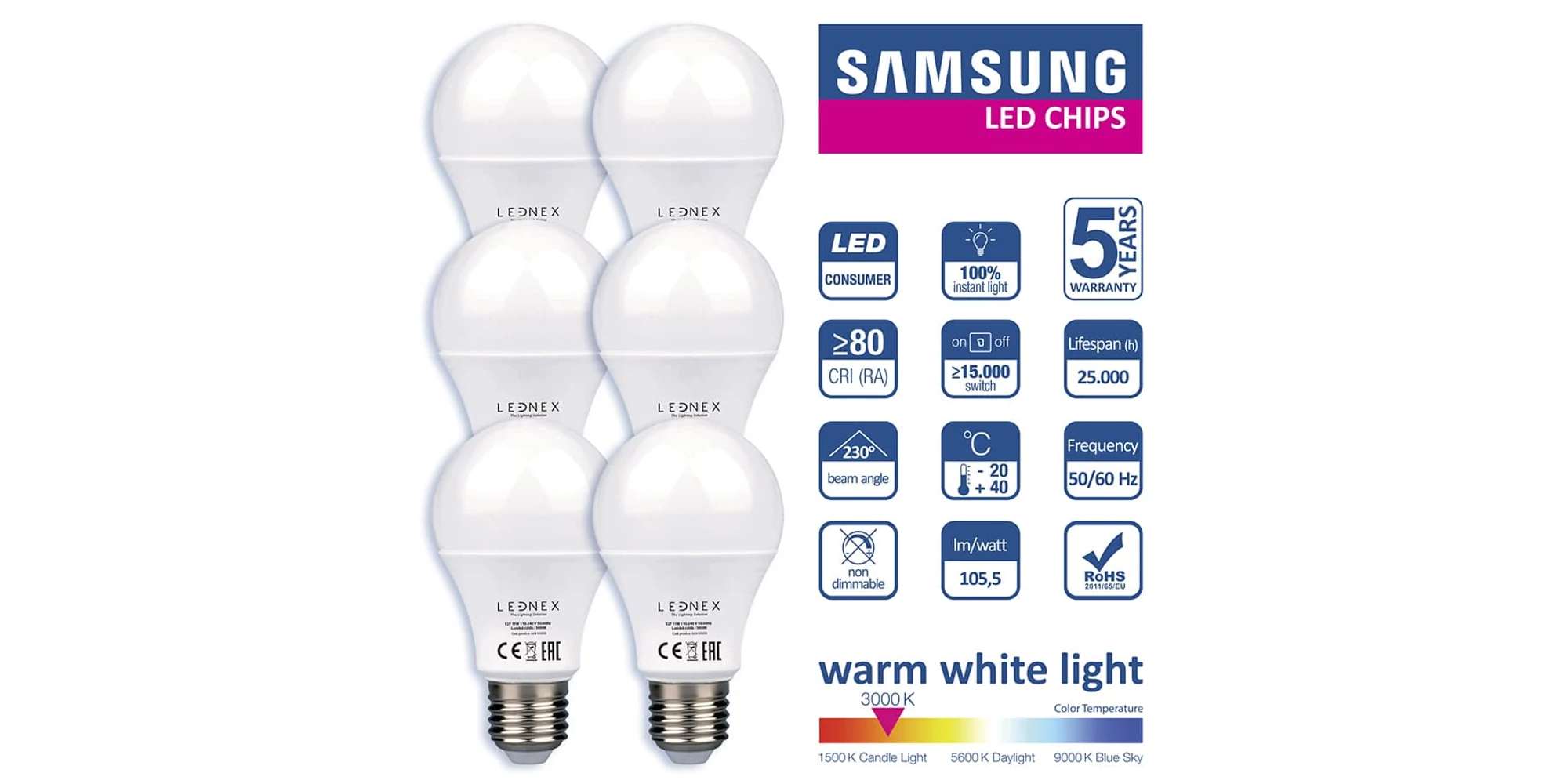 | Prezentul articol Set de 6 becuri LED, E27 10W 3000K, A60 LEDNEX, este alegerea perfectă din categoria Becuri LED, ceea ce înseamnă de asemenea Confort prin instalații de calitate | Melinda Instal | |