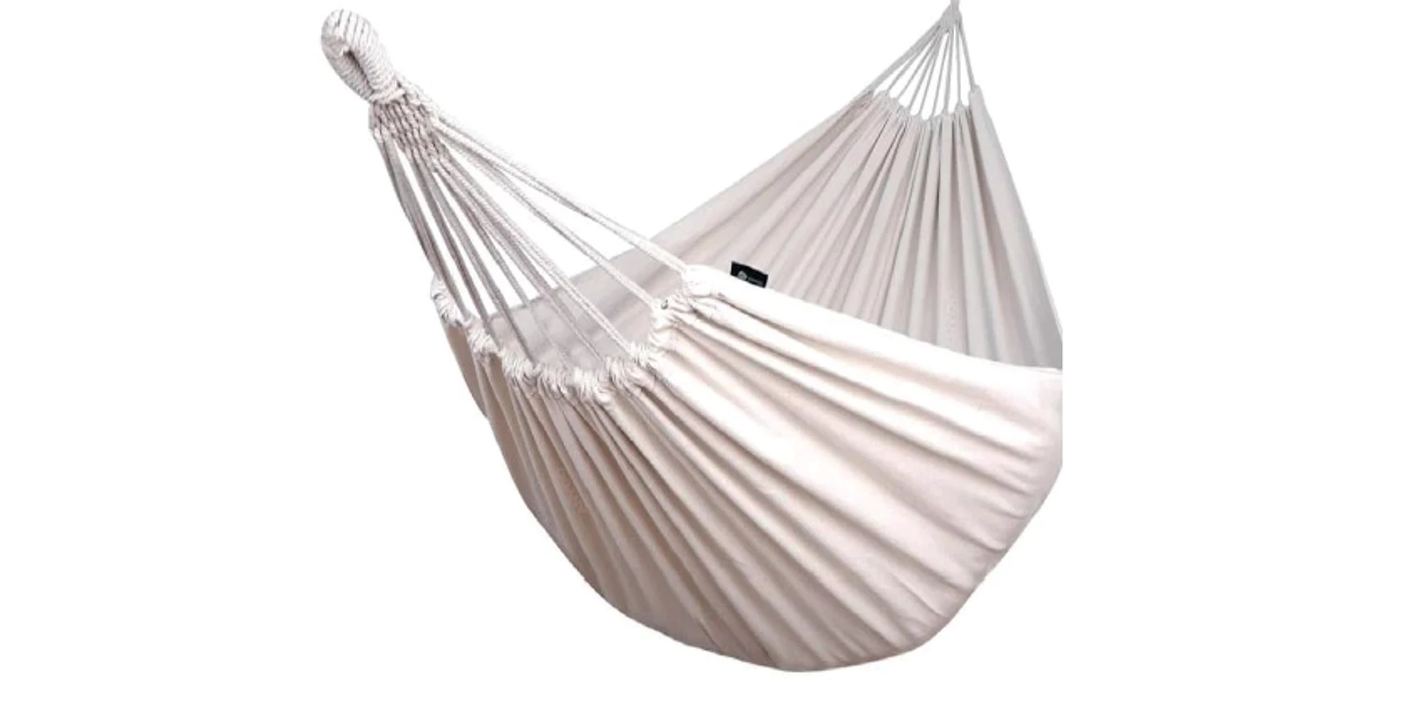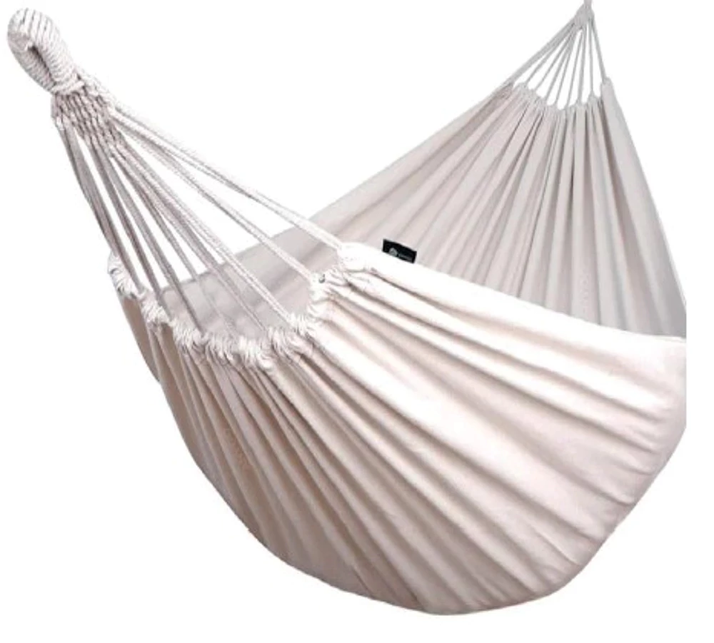 Imaginează-ți că te întinzi confortabil într-un hamac spațios de 200 x 100 cm, perfect pentru tine și poate chiar pentru partenerul tău. Culoarea bej elegantă se integrează perfect în orice ambient, fie că alegi să-l instalezi în grădină, pe terasă sau să-l iei cu tine în următoarea aventură în natură.