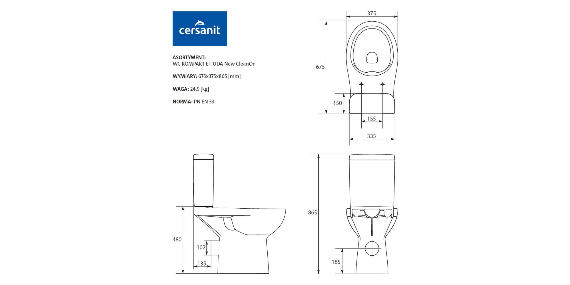 Set wc compact 579 Etiuda New CleanOn 010, 3/6l, pentru persoane cu dizabilitati, K11-0221, CERSANIT | 20210205 | 1.159,00 Lei | Wc stativ | Confort prin instalații de calitate | Melinda Instal
