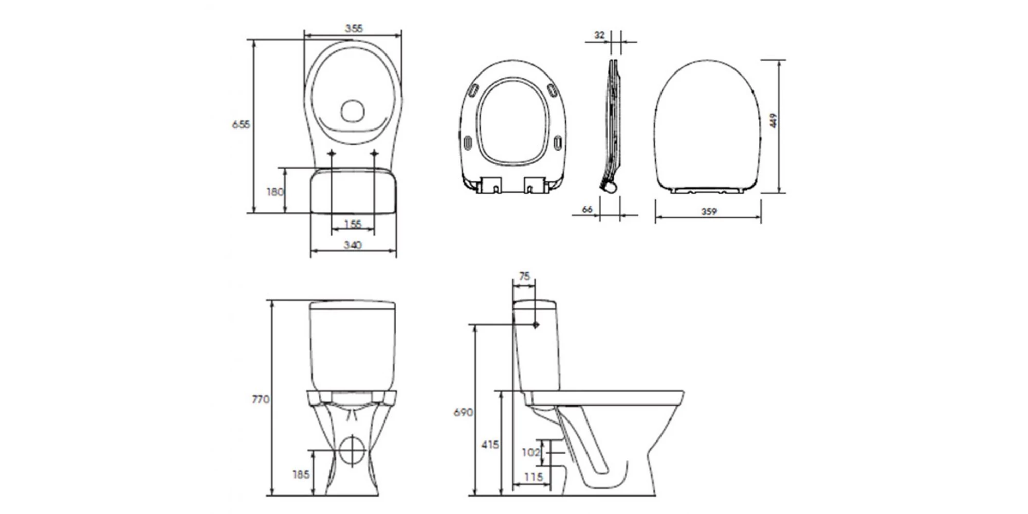 | Distanță între găurile de prindere capac wc (mm) | 155 |