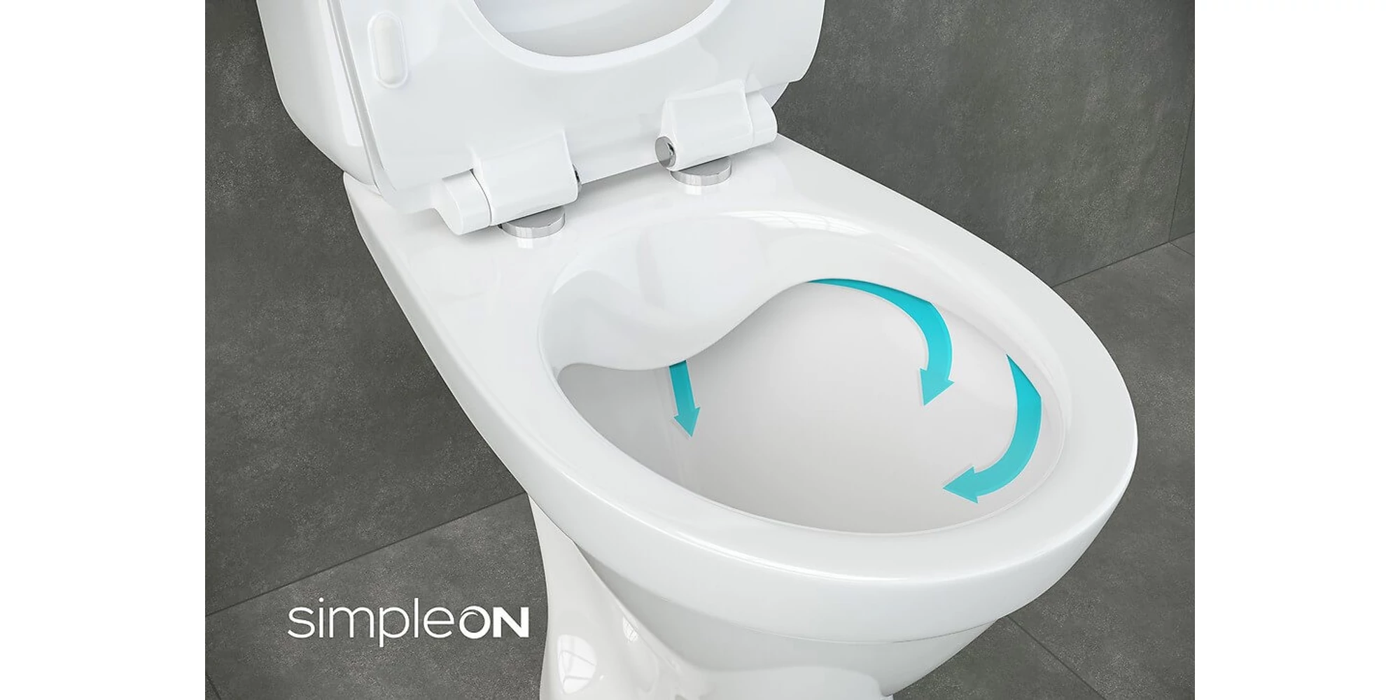 SimpleOn constă în reducerea ramei și lăsarea acestuia doar în partea din spate a vasului wc. Caracteristică pentru această soluție este forma „limbii” ceramice din care iese apa. Ba mai mult, apa care curge din ambele părți curge în direcții opuse și se întâlnește doar în fața vasului. Datorită acestui lucru, întregul interior este spălat și curățat complet.