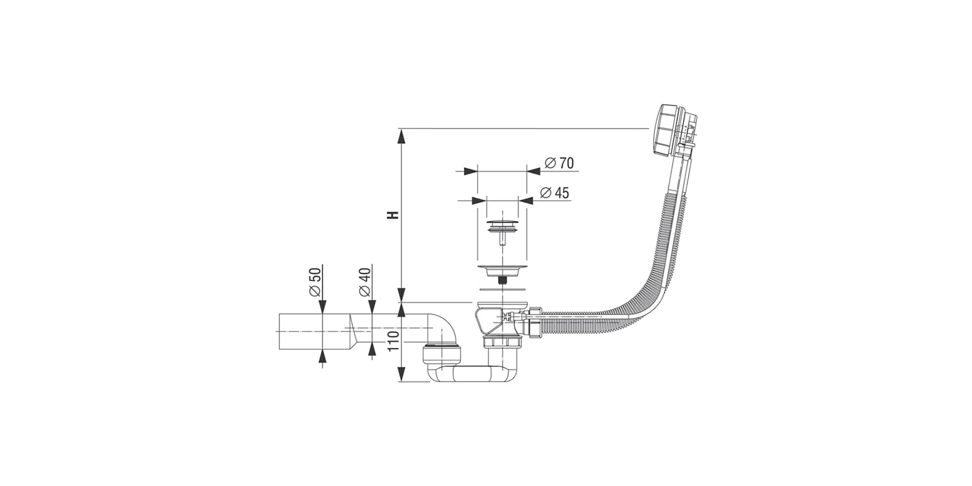Sifon pentru cada de baie, automat, H = 450 mm, buton Ø 45 mm, LIV
