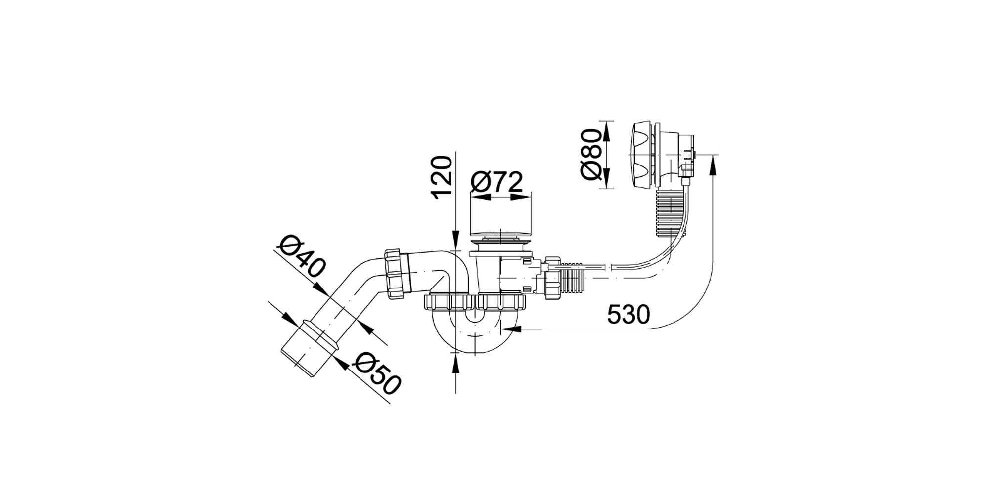 Cu o înălțime de 53 cm, sifonul este conceput special pentru căzile moderne, inclusiv pentru cele mai înalte sau cu structură mai complexă. Conectorii sunt standardizați conform normelor, iar piesa asigură o etanșeitate perfectă la o presiune de 0.1 bar, cu înălțimea coloanei de apă > 50 mm, astfel încât nu trebuie să-ți faci griji pentru scurgeri sau mirosuri neplăcute. Intervalul de temperatură acceptat este de 20–95 °C, ceea ce îți garantează o funcționare stabilă inclusiv la apă fierbinte.