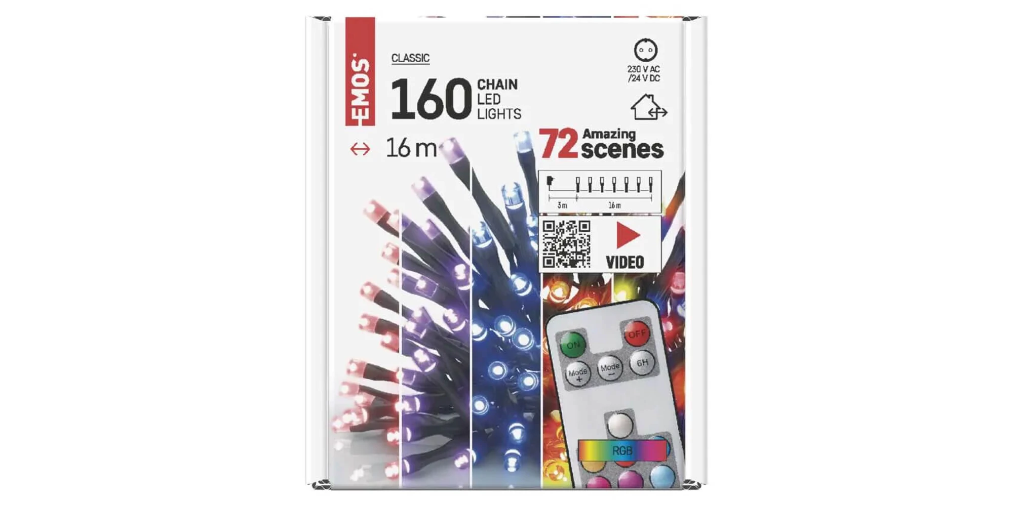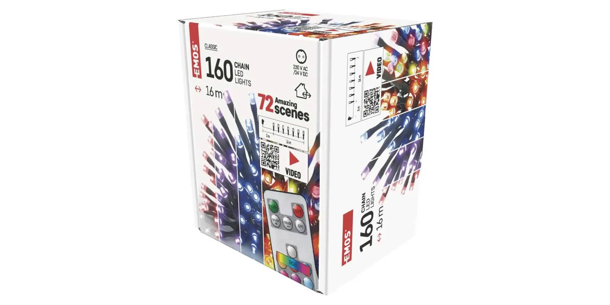 Șirul de lumini LED de Crăciun, 16 m, 72 mod, interior și exterior, RGB, telecomandă, programe, temporizator, D4AA04, EMOS reprezintă o alegere excelentă pentru a aduce strălucirea sărbătorilor în viața dumneavoastră, oferind o experiență de iluminare festivă, personalizată și convenabilă.